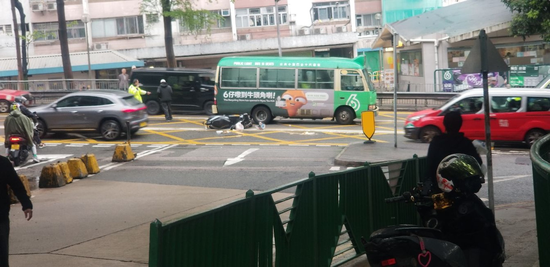 ; {! H; K# w$ i1 ~意外涉及一輛小巴及電單車。(Choi Wan Estate彩雲邨 Facebook / 李江耀)