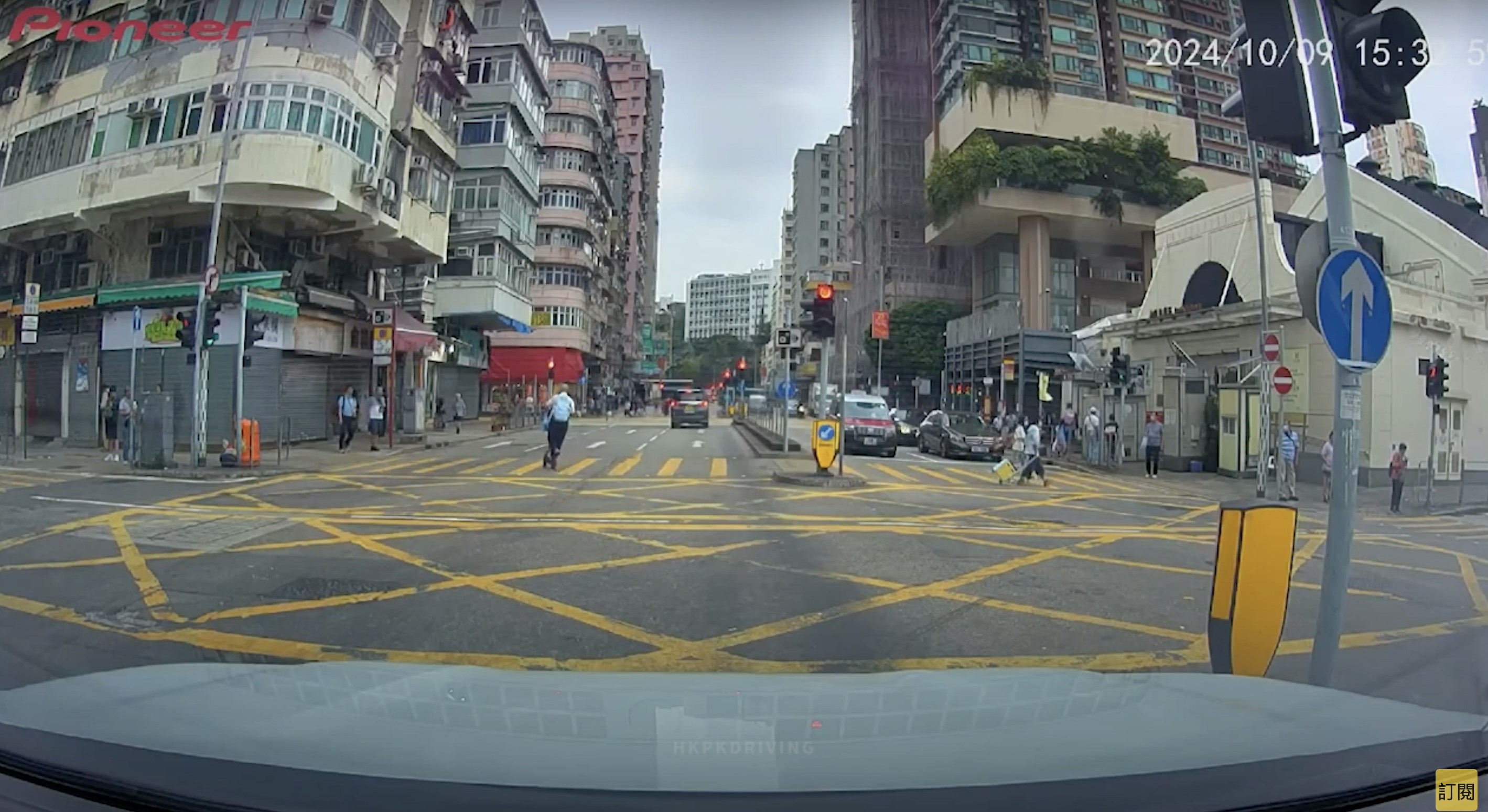 2 _" P, @ \& a2 a3 B0 P! Ios.tvboxnow.com有途人正值行人綠燈橫過馬路,電動滑板車之後再左轉,逆線駛入上海街。(YouTube 車CAM特警片段截圖)( A/ @ P* u1 x' c6 n% I