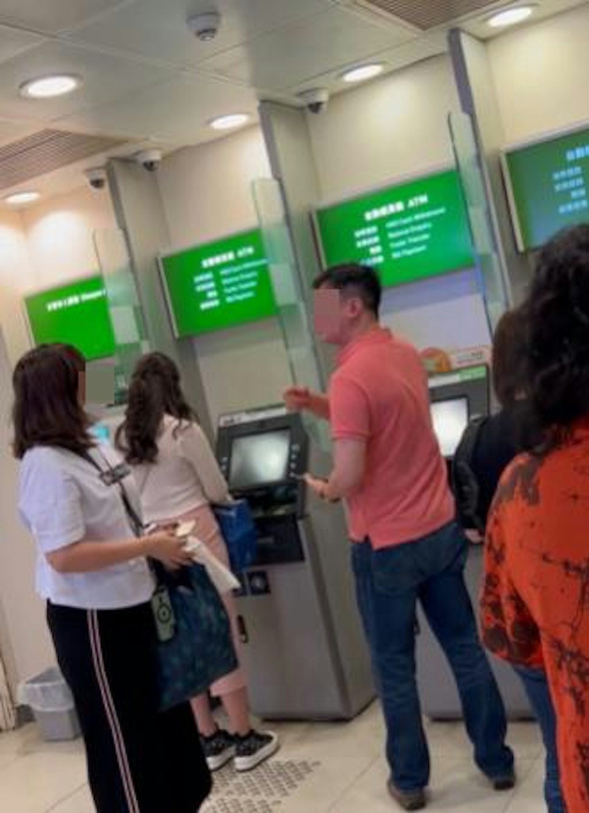 有港男在Threads上發布影片,留言指「排下隊,撳下機,嗌下交」,指2名市民因櫃員機使用時間起爭執。從影片可見,正在使用恒生銀行櫃員機的大叔,轉身鬧剛使用完正想離開的大媽,指她佔用時間太耐,「你有10張咭係咪撳晒10張咭」;大媽回嗆:「咁你排隊排喺我後面,我無辦法㗎」,男子叫大媽應要再排隊,怒斥「好X自私」。
