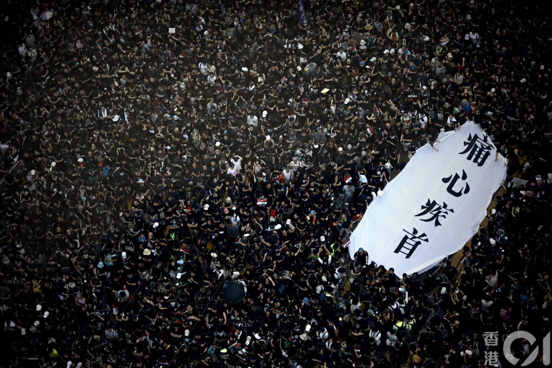 6月16日,民陣發起第四次遊行,主題為「譴責鎮壓·撤回惡法·大遊行」,主辦方稱人數超過200萬,警方則僅統計原定路線,指高峰時有33.8萬。晚間港府發布新聞稿,向香港市民致歉,並表示政府已經停止立法會大會對修訂《逃犯條例》的工作,但未使用法律用語「撤回」。(盧翊銘攝)