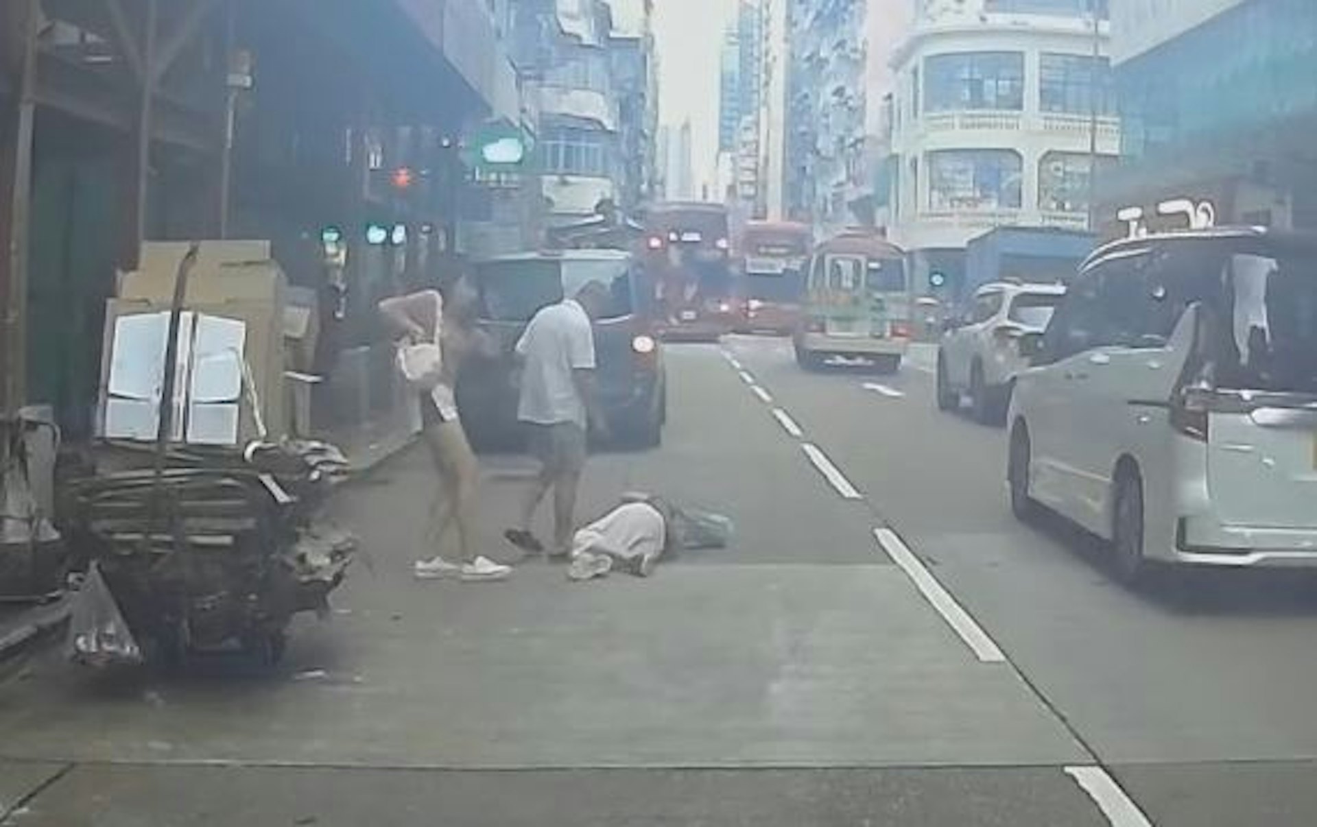 網上流傳一段車Cam影片,可見於昨日(21日)下午2時許,一輛紅Van於長沙灣青山道往深水埗方向行駛,駛至近青山道320號對開時,紅Van在中線靠左停車落客,一名男乘客先行落車,尾隨其後的一名女乘客正欲下車、雙腳正要落地之際,紅Van突然開車,女乘客登時失去平衡,向右跌倒,臀部先著地,繼而後腦撞向地面,她用手按住後腦,倒地不起。其他途人見狀上前了解,而紅Van則絕塵而去。7 X1 q- J% ^$ u: [* _