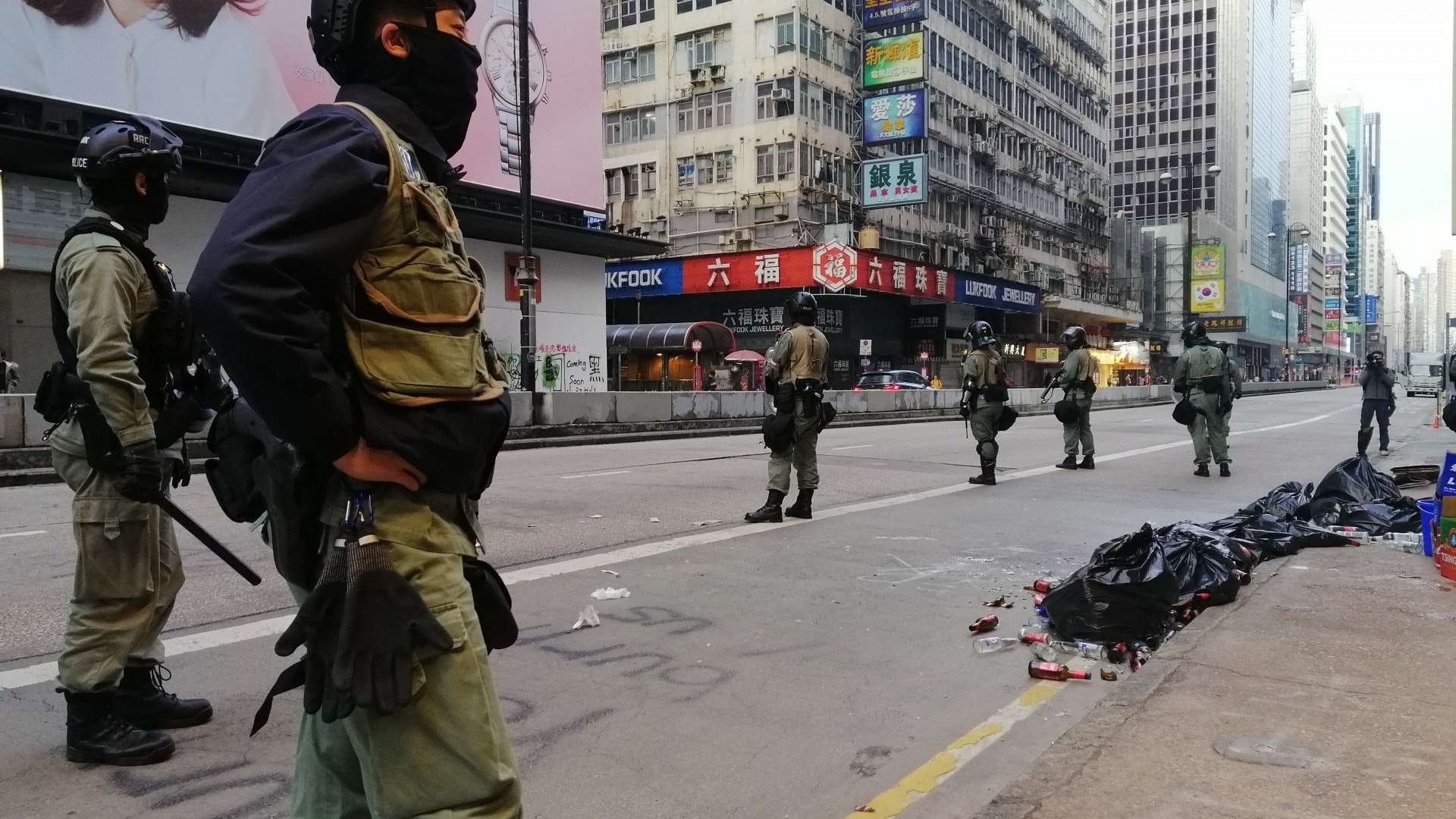 警方稱:去年2019年12月9日晚上,有示威者在旺角洗衣街及山東街交界一帶堵路,警方其後作出驅散行動,在場拘捕1名17歲少年、1名20歲姓杜男子及1名17歲少女,3人涉嫌「非法集結」及「藏有工具可作非法用途」。