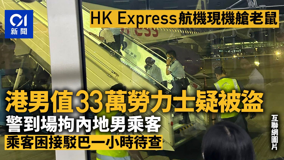 p. m% }% S. q) Otvb now,tvbnow,bttvb【HK Express/香港快運/盜竊/勞力士/機艙老鼠】有本港市民稱周日(25日)凌晨乘搭HK Express香港快運從越南峴港抵港的航班UO561,下機後上了接駁巴士,但車輛一直停在原地,車門鎖上,長達1小時。其後看到有警車及警員到達,從車上帶走五名男子,懷疑發生機艙老鼠盜竊案。