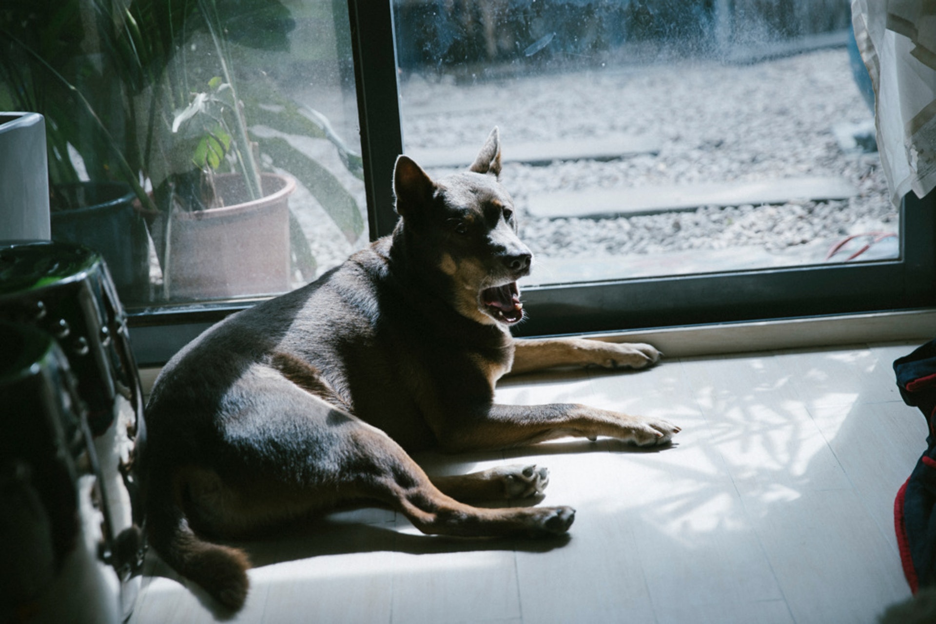 6 }! G/ s, H, O O, B她家中的兩隻狗也是領養回家的,前方的Bungle年紀稍大,一天到晚窩在沙發裡。牠是被繁殖的狗,毛髮太厚不適合在港生活,卻被賣到香港。