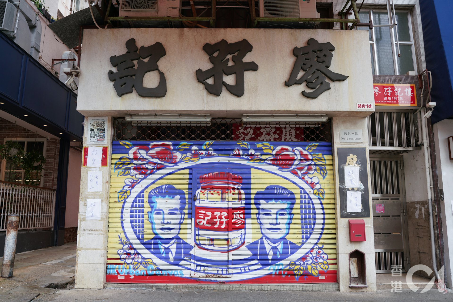 2 D) r, g/ H! H. Y8 K7 ~# f公仔箱論壇百年老字號廖孖記腐乳油麻地地舖拉閘,閘上及門前均貼出「結業」、「停止營業」字句。(黃浩謙攝)公仔箱論壇( \, g B/ t7 {+ ~5 j8 G+ p