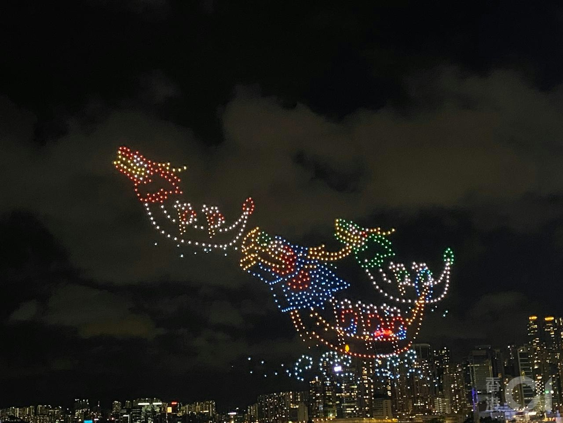 旅發局今晚(10日)8時於灣仔海濱對出海面舉行端午節慶主題無人機表演。無人機切出龍舟競度圖案。(蘇煒然攝)os.tvboxnow.com3 N$ ?, s, {% S) Q, t, |( ?