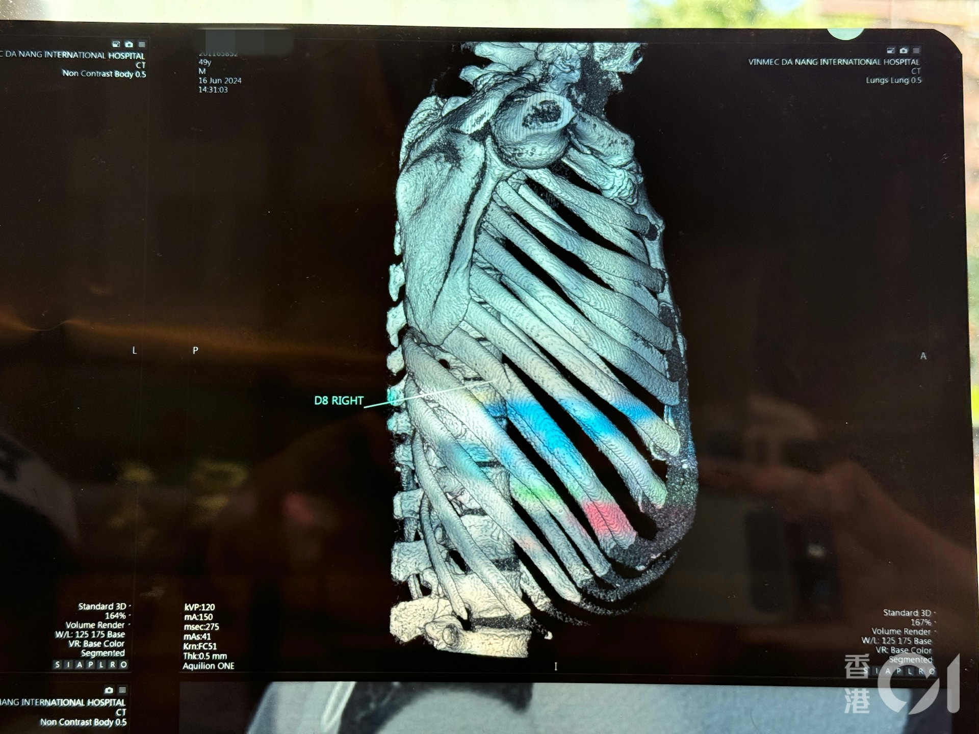 3 ~# x2 l1 P1 N9 @7 v9 L. c0 B事主事後離開公立醫院,自行到大型醫院求診,電腦掃描顯示其肋骨斷裂。