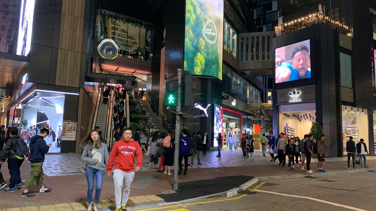 於晚上7時多,旺角西洋菜街一帶氣氛熱鬧,街頭上人來人往,有街頭歌手依舊在街頭表演,而過往曾多次發生衝突的亞皆老街十字路口一帶未見有黑衣人聚集。區內晚上有數輛警車停泊戒備,彌敦道上亦有警車駛經,有數名防暴警員停留在街道上巡視。