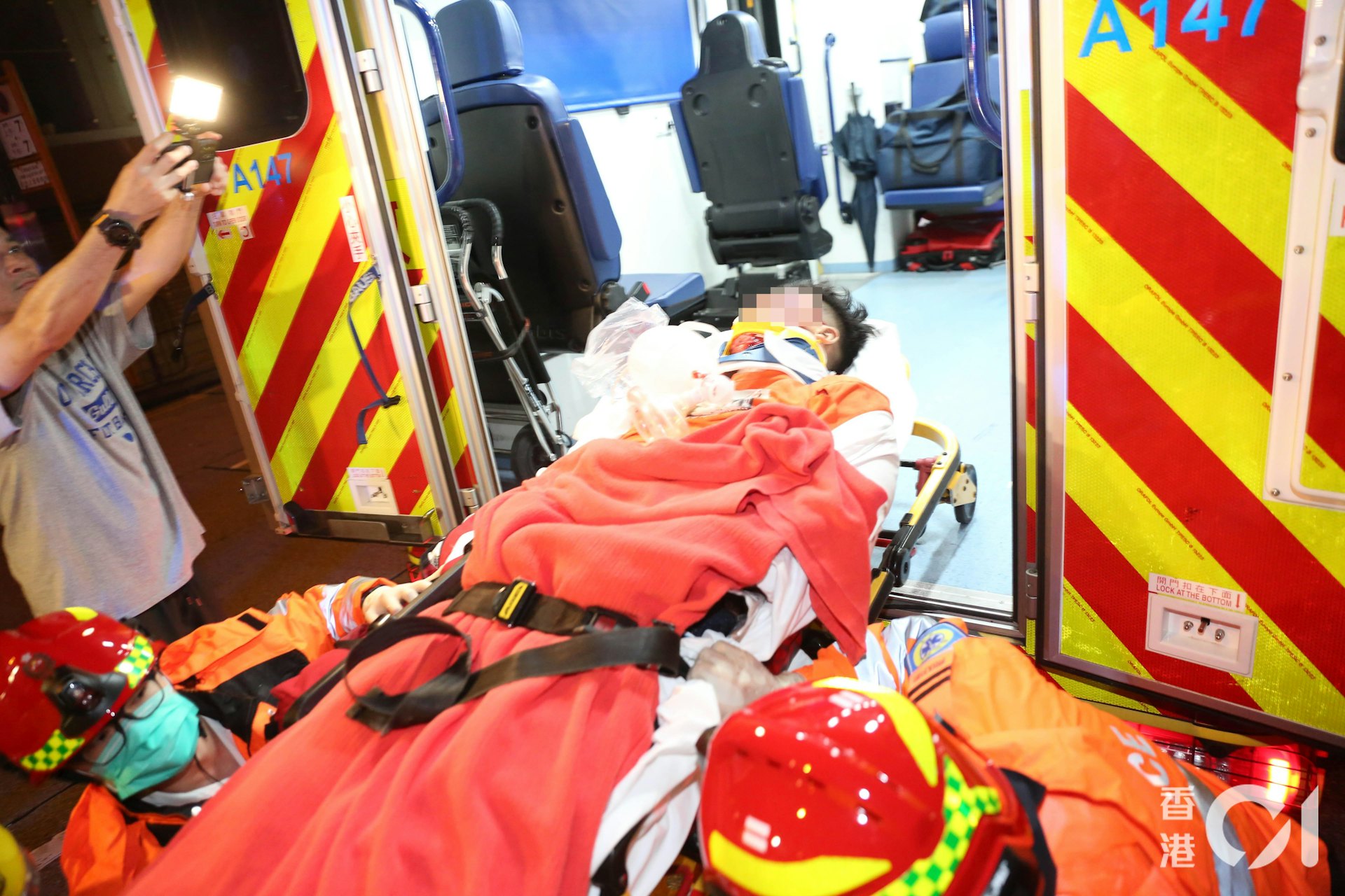 . P) {4 A$ h& T8 Y# @傷者送院治理。(陳永武攝)