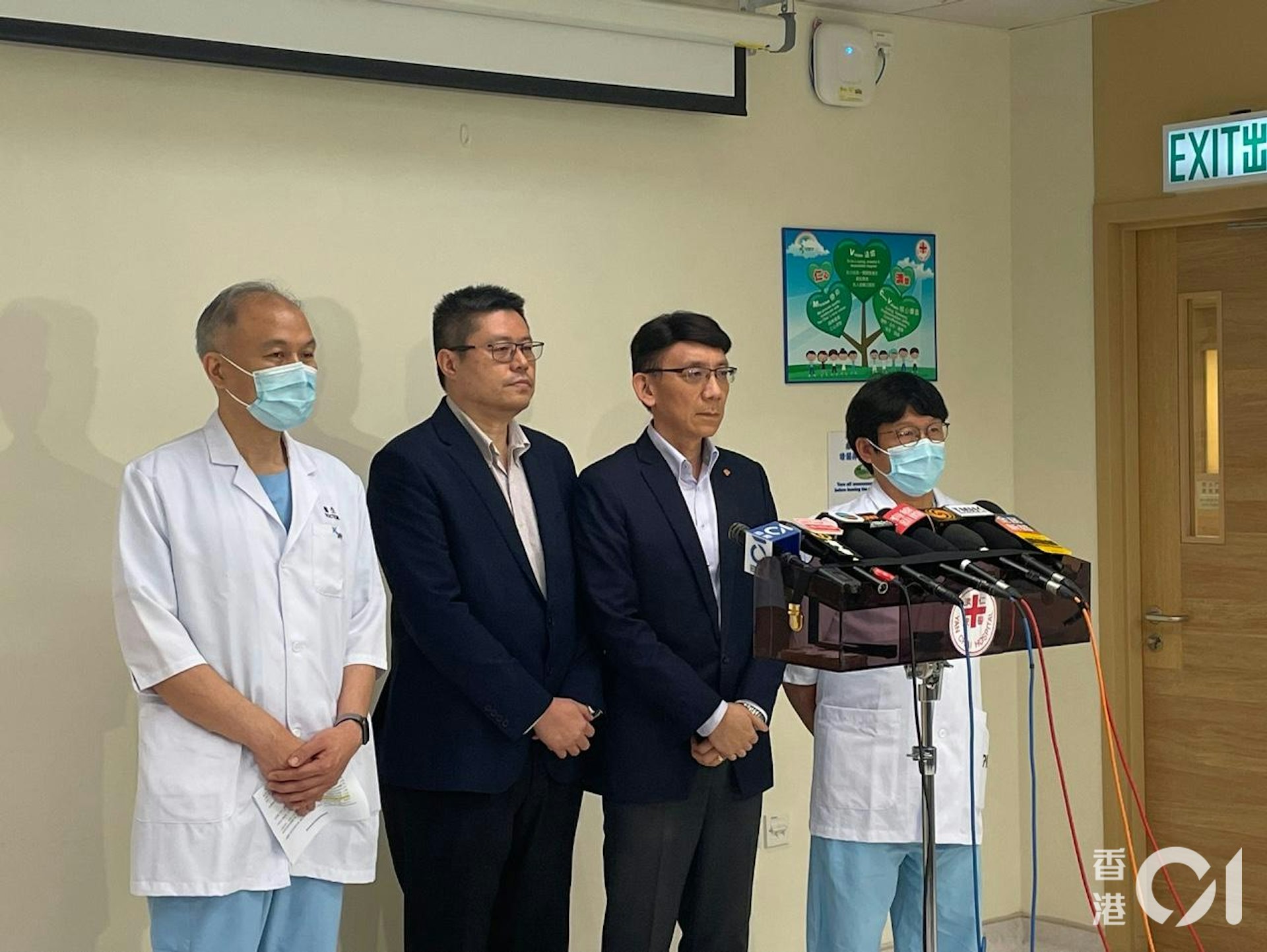 # X1 z3 z( A6 k8 Y5 ~6 u; Q/ k仁濟醫院傍晚時分召開記者會交代事件,指4歲女童跌傷後腦入院,縫針時心臟驟停。(洪芷菁攝)