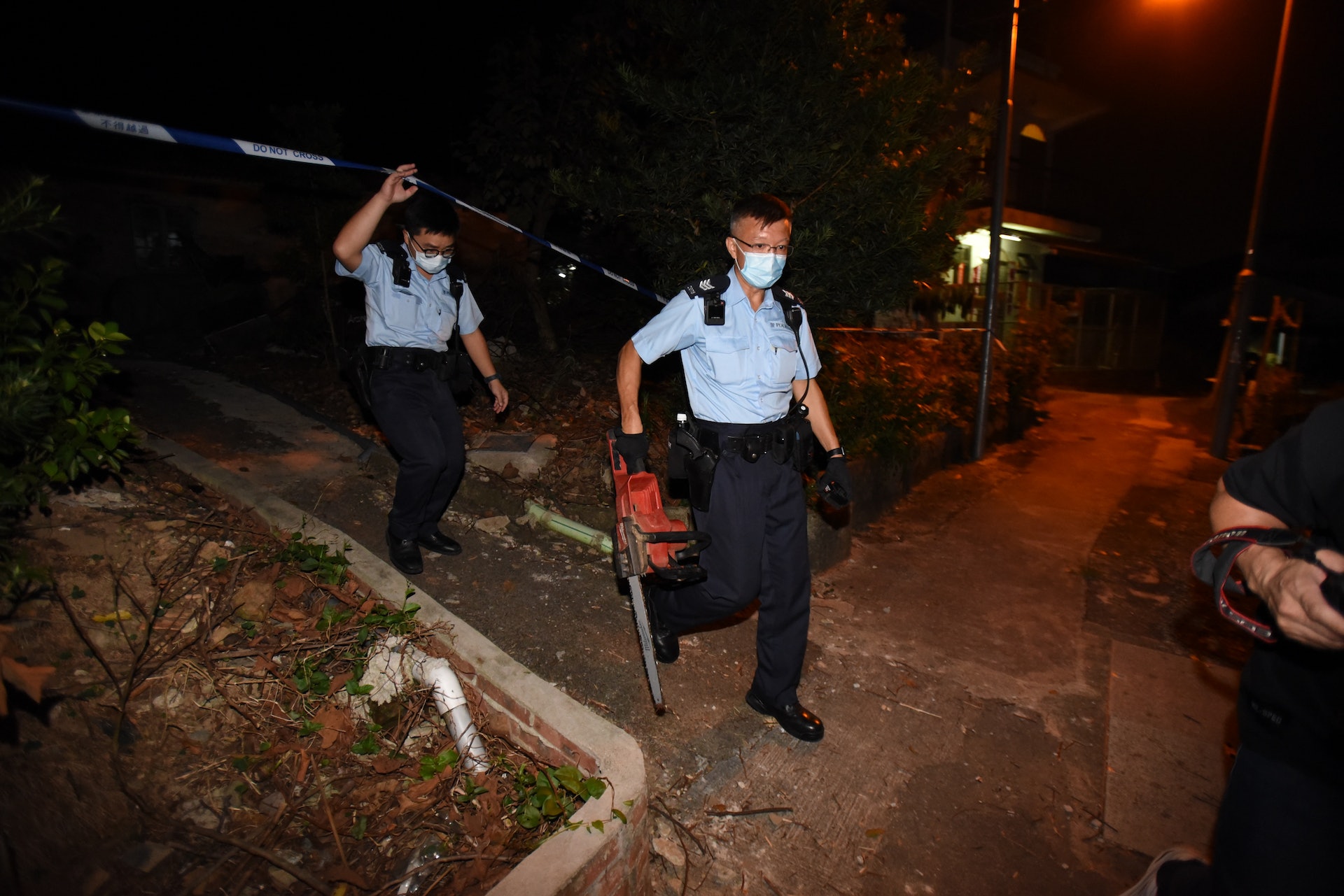 警方檢走一把電鋸。1 F1 M8 \7 I% t: Y: [ b