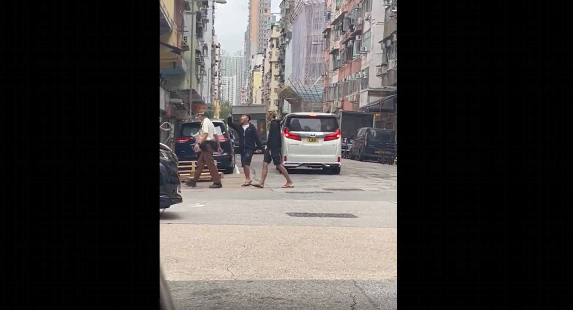 前傳:交通督導員於深水埗福華街及楓樹街交界巡邏期間,與附近車房職員起口角。(網上影片截圖)