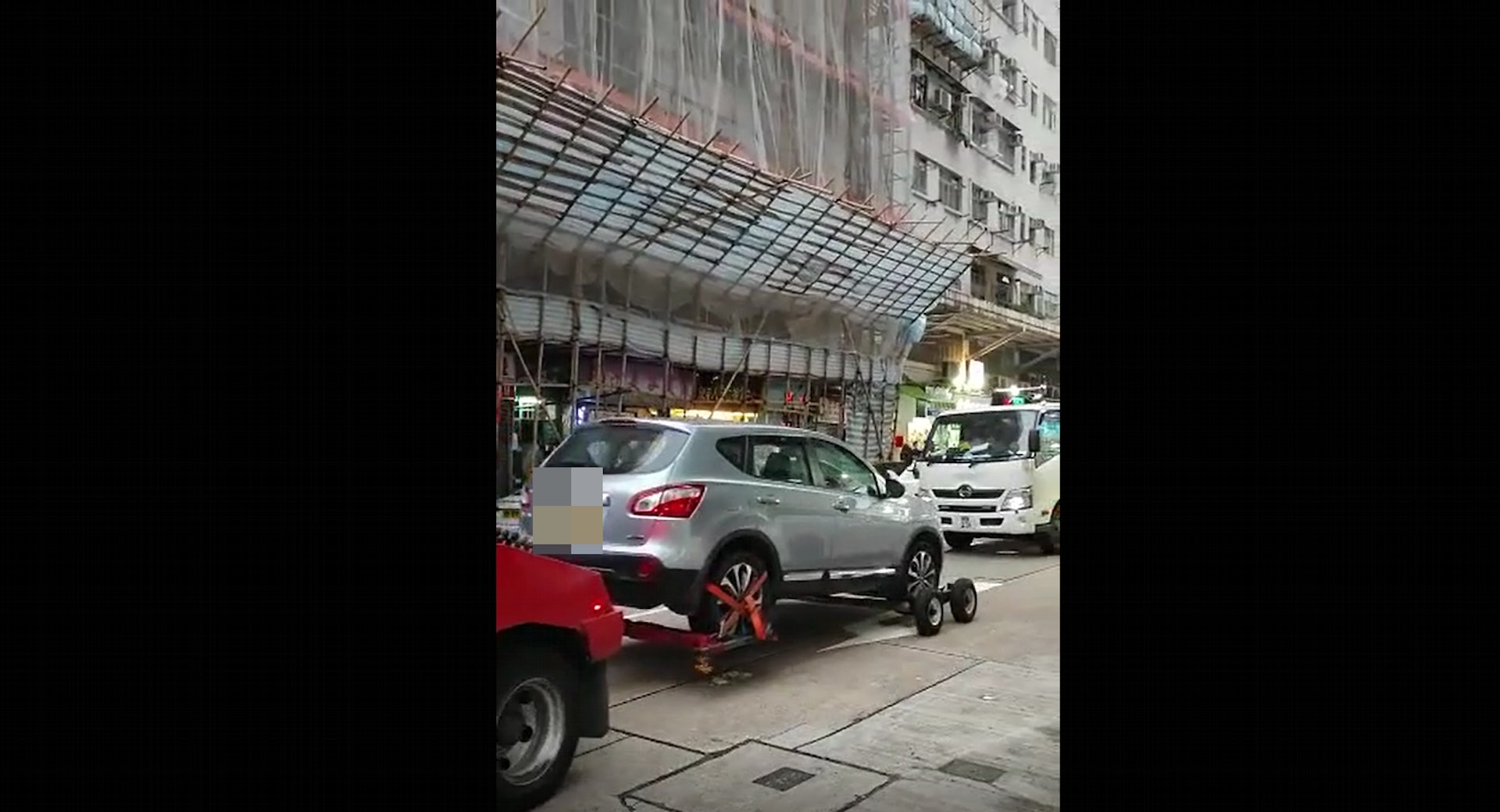 ) `3 @6 ~, ^3 c* t: u# D4 `! L公仔箱論壇後果:事後拖車奉召到場,最少將3輛阻街的車輛拖離走。(網上影片截圖)