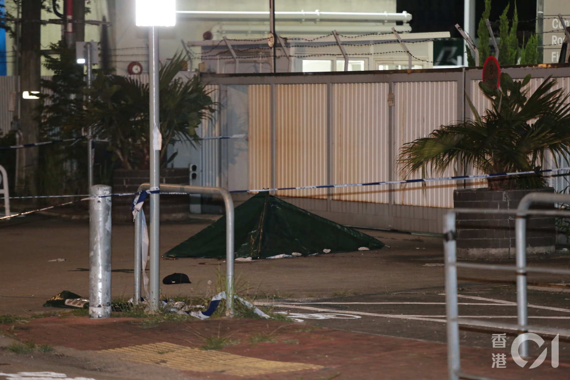 警方封鎖現場調查,死者遺體被帳篷覆蓋。(梁偉權攝)