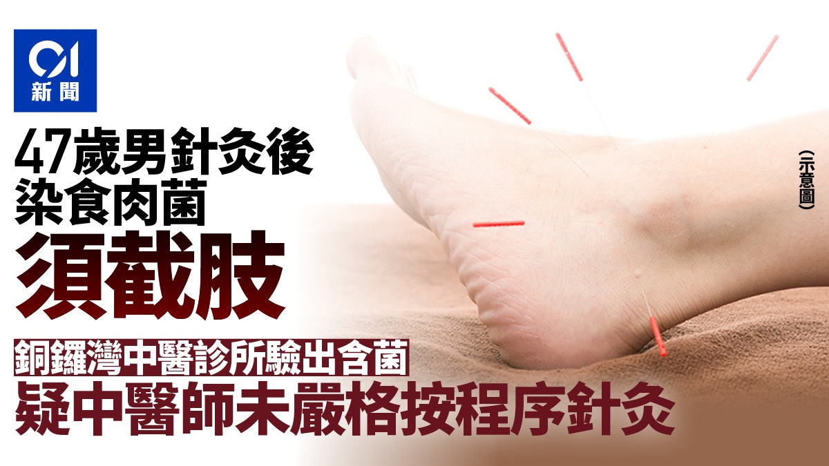 一名47歲男子今月初扭傷,之後到上環及銅鑼灣分別3次接受兩名註冊中醫師針灸治療,及後證實感染甲類鏈球菌,即俗稱「食人菌」或「食肉菌」,併發壞死性筋膜炎,需要截斷左下肢。病人現時仍留院,情況穩定。