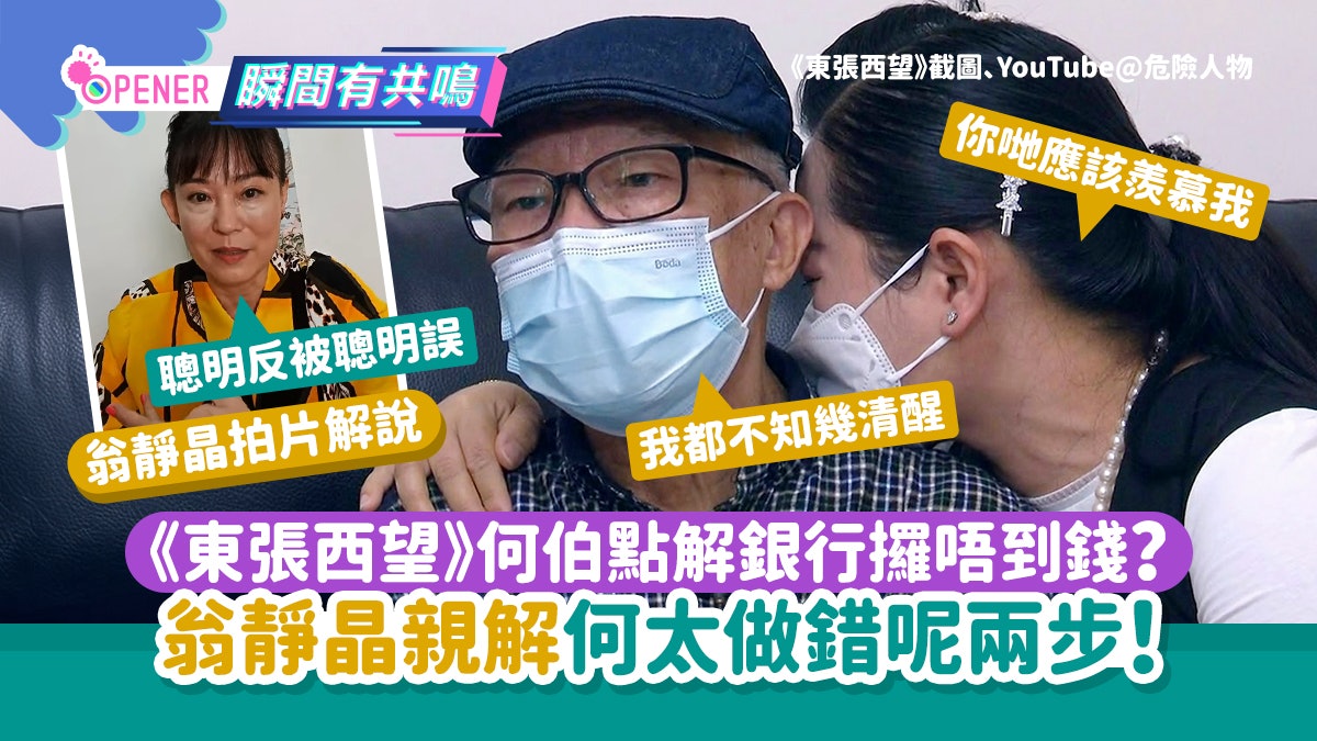 《東張西望》何伯何太事件繼續引來全城關注,何伯更跟5名仔女反目,狂轟細女單簽提走聯名戶口450萬存款。翁靜晶昨晚也在其YouTube頻道《危險人物2.0》拍片分析,解釋點解何伯去銀行拿不到錢,但女兒卻可以拎到,以及何太在當中兩大行為做錯,以致令事情弄到如此田地!