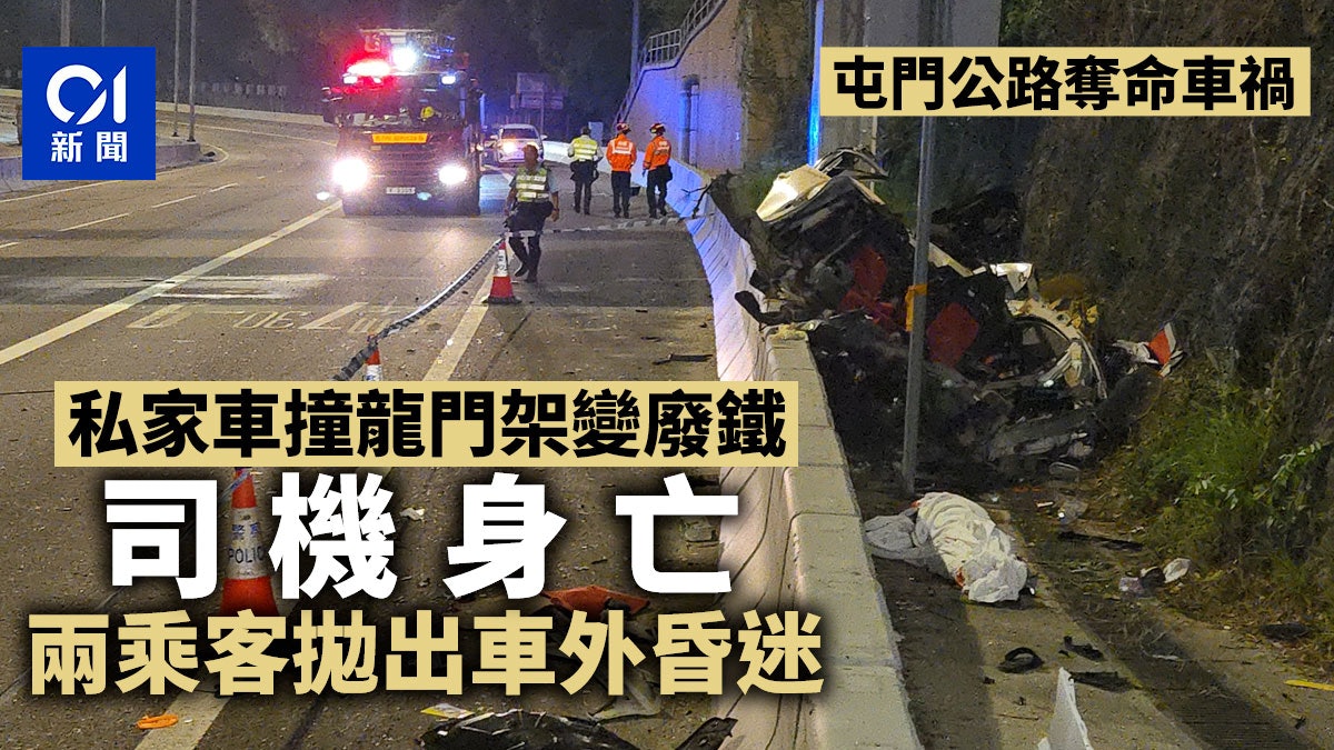 救援人員接報馳至現場,發現有1男1女在地上昏迷不醒,立即為他們進行急救,再由救護車急送屯門醫院搶救;而車內則有一名男子被困駕駛席,消防將其救出,惟救護員當場證實該男子已明顯死亡;警方正調查車禍始末,將案件列作「致命交通意外」跟進。
