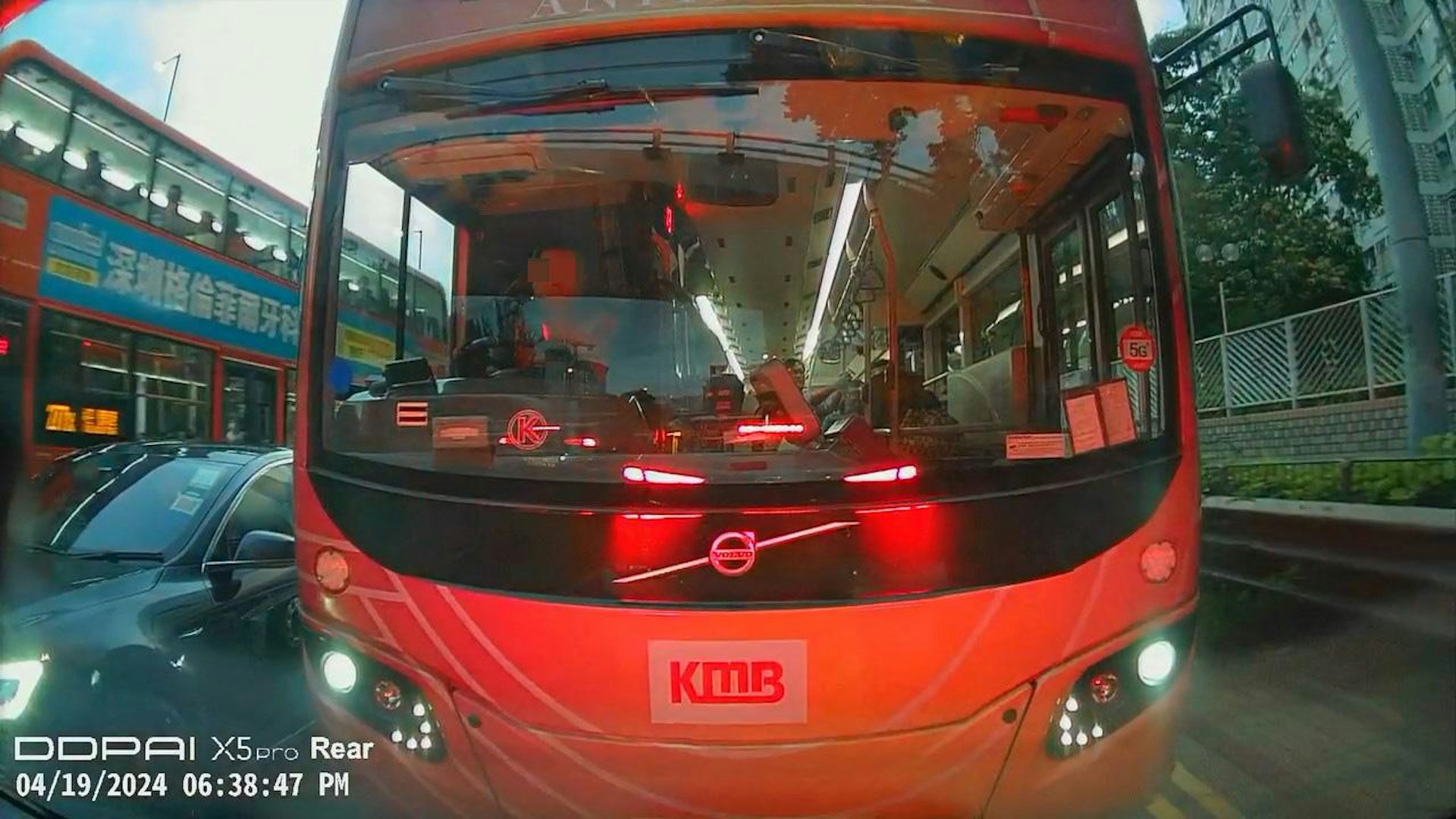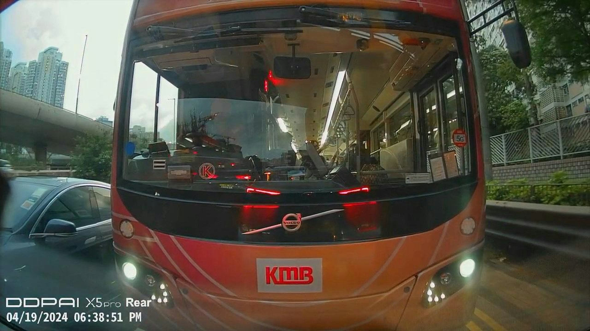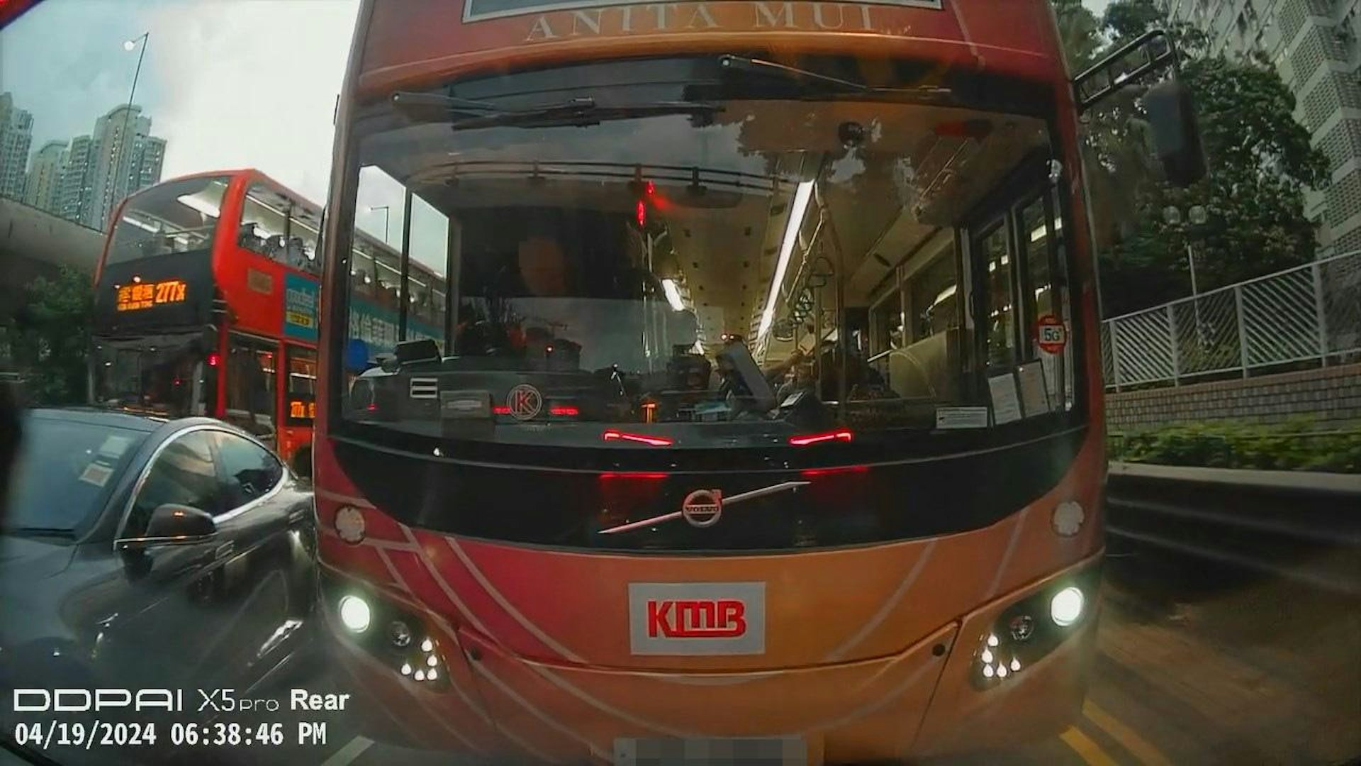 本港網絡流傳1段「Tesla大戰九巴」影片。(影片截圖), \$ P. Q; c2 k