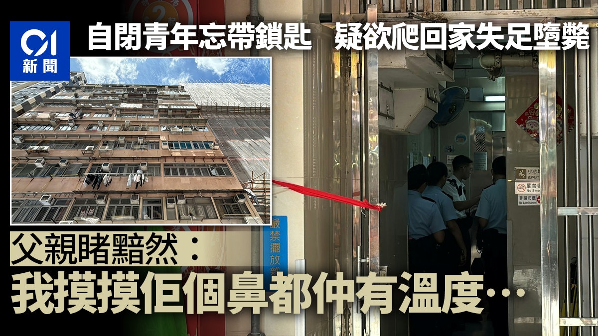 ) L" G- q5 {" d5 K" r: ~5 Z. E一名22歲姓楊男子,今早(20日)約10時半由花園街195號華美樓天台墮下,倒臥平台不醒人事,他立即被送往廣華醫院搶救,其後惜告不治。《香港01》記者接觸到楊男父親,他表示兒子自小便確診自閉症,需到協康會上課,今早離家發現忘記帶八達通及鎖匙,在家門前呼叫家人無果後,懷疑欲由天台爬回家中,不慎失足墮樓。案發不久,楊父獲鄰居告知聽到巨響,他衝到天井平台,發現兒子已奄奄一息,「我再摸摸佢個鼻......都仲有溫度吖」,惜兒子搶救後返魂乏術,楊父黯然「冇乜嘢想講,淨係唔甘心啦......唉……」