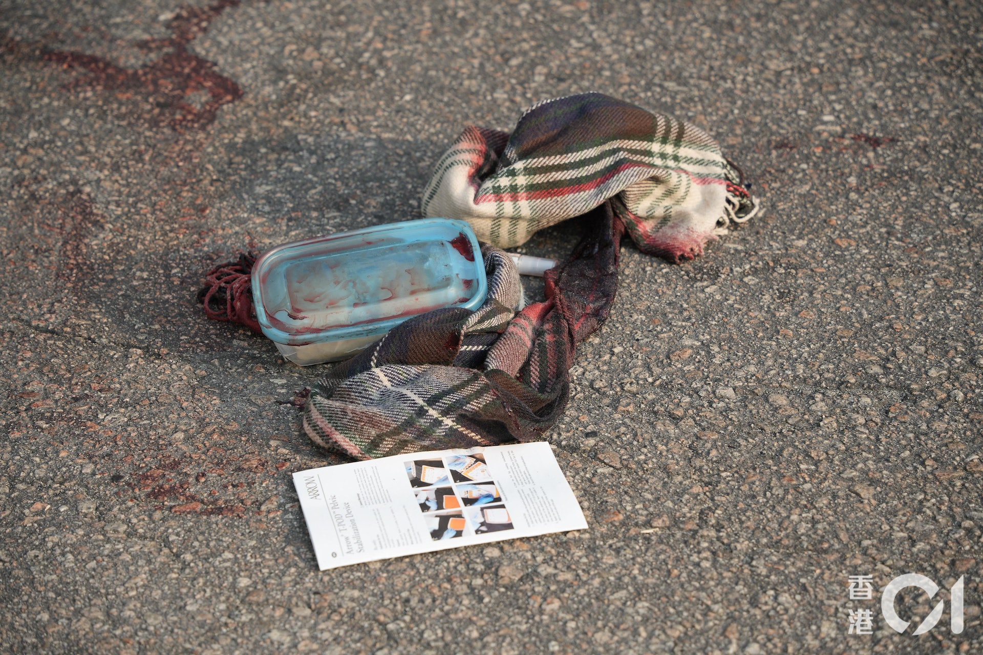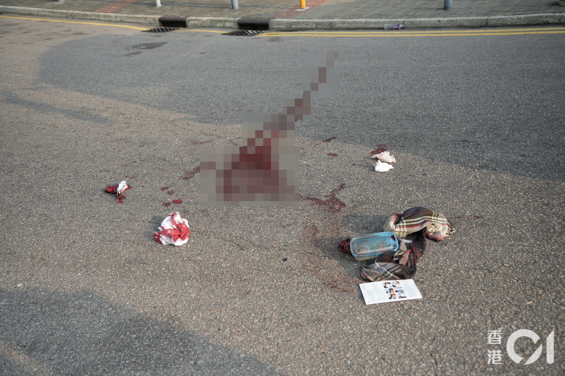 ) k4 W1 F' b T# ]tvb now,tvbnow,bttvb一名女子在觀塘駿業街與海濱道交界,遭一輛貨車撞到,昏迷送院,現場地面遺下染血急救用品。(左朗星攝)& H( p0 J3 d2 k1 x* o; c6 f