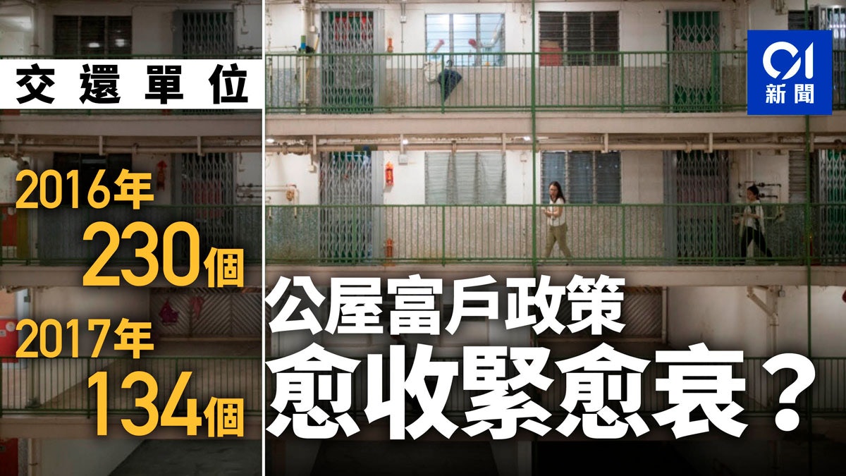 $ H3 k% y( p, q8 \. I+ N$ e公仔箱論壇房委會於2017年10月起收緊公屋富戶政策,據但運房局提供的資料,自政策收緊以來,僅有134名住戶交還公屋單位。! a2 y. M4 P3 Q" R- g9 D