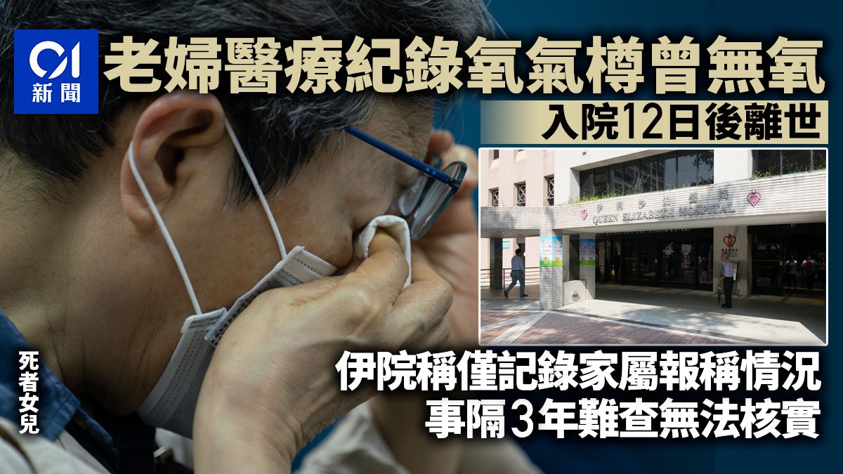 # I, g1 G0 V0 ^一名九旬老婦的女兒近日憶述,母親2020年1月因病入伊院急症室,到達後她叮囑護士,母親需供應氧氣協助呼吸,她與外傭之後離開用膳。回到急症室發現母親滿頭大汗,拿開氧氣機鼻導管發現無氧氣供應,遂告知醫護進行急救。惟其母12日後因肺炎離世,醫療紀錄有病人氧氣樽一度無氧的記錄。