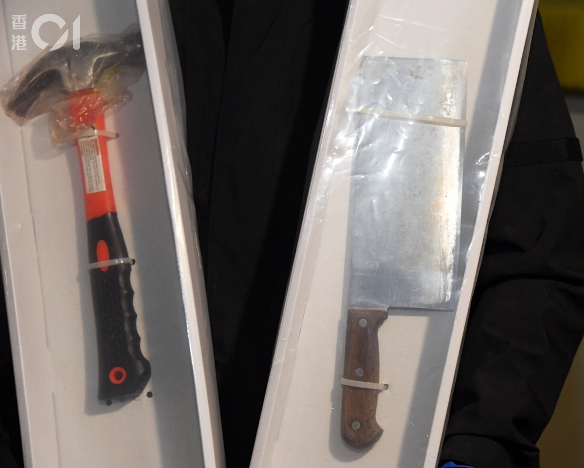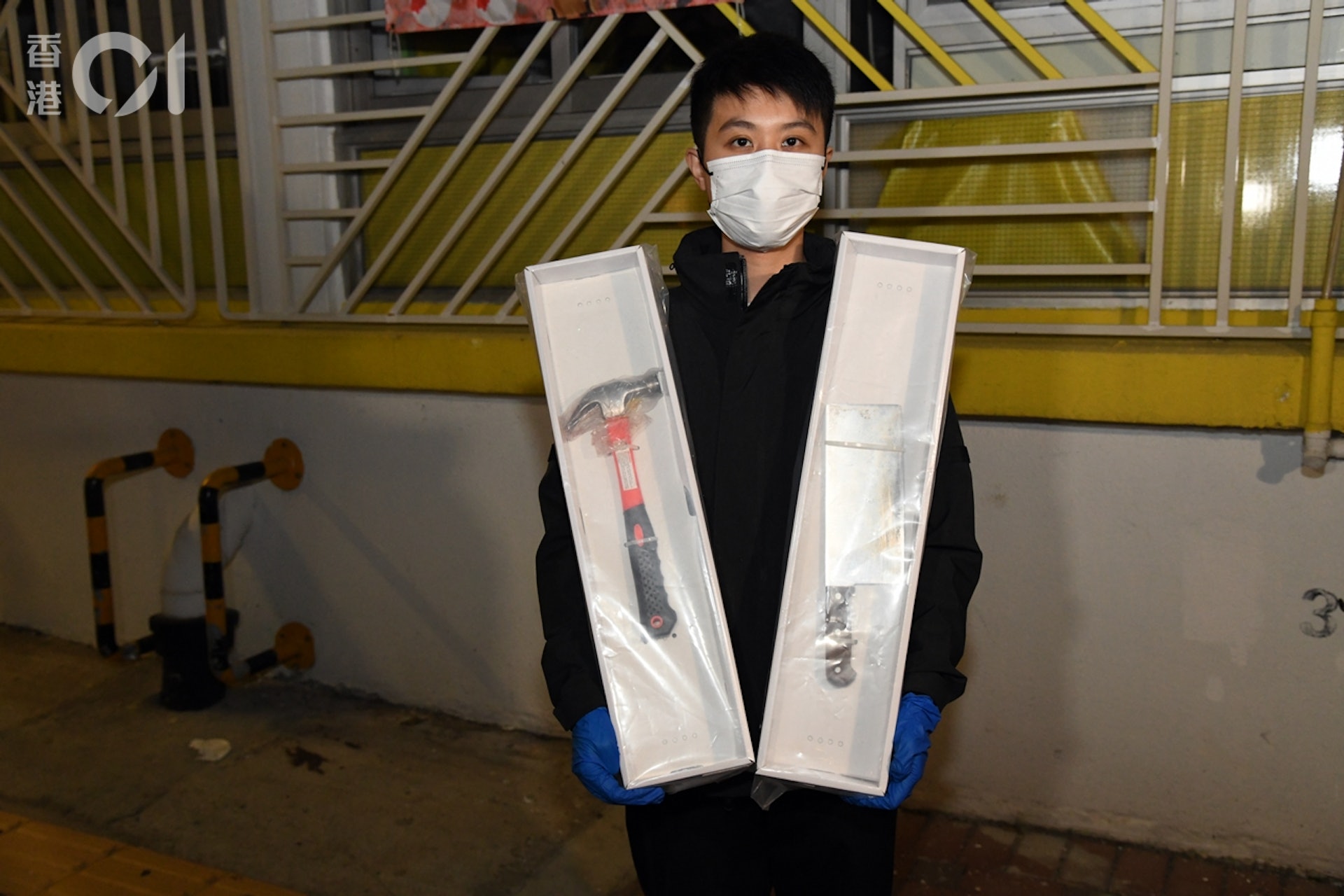 & C. N2 t9 G( t4 o重案組探員檢走懷疑兇器,包括刀和錘。 |