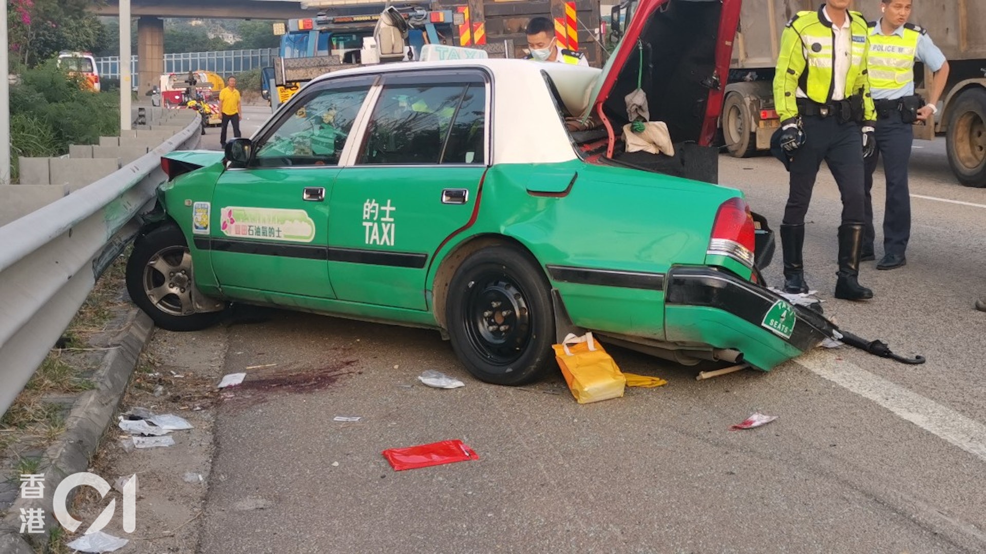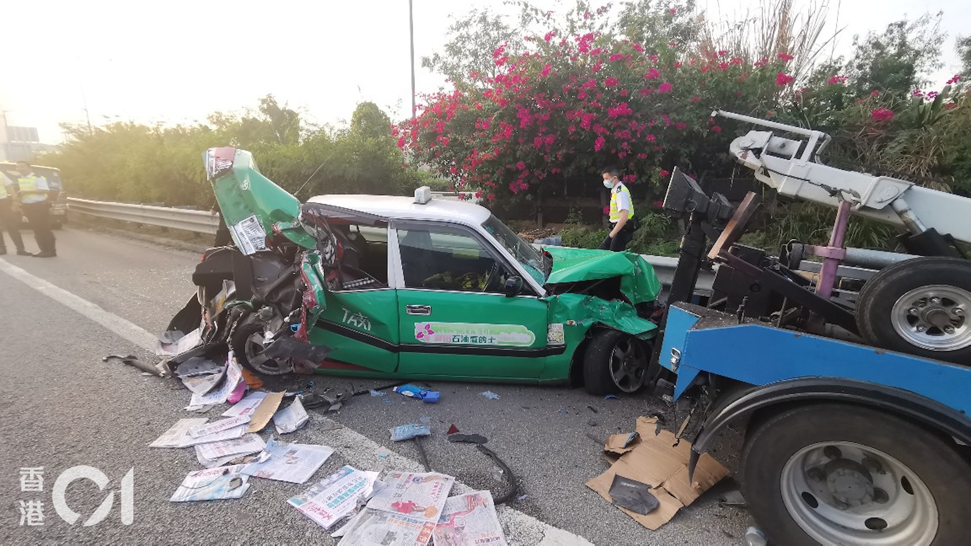 涉事的士嚴重毀爛。(馬路的事 (即時交通資訊台)