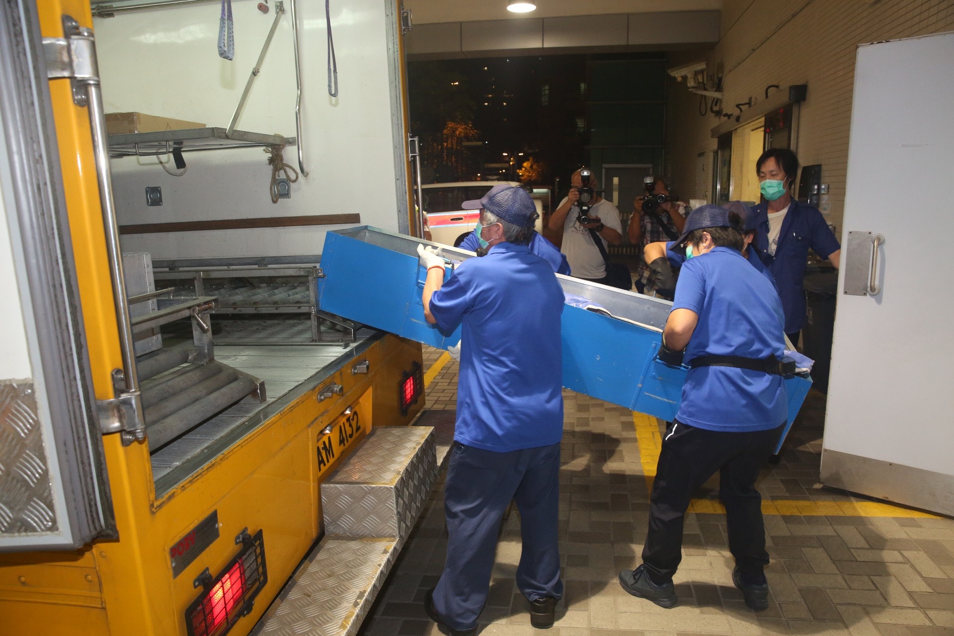 ( U+ e9 p3 ] P- T元朗髮型屋奪命兇案︰遺體舁送殮房。(賴南秋攝)tvb now,tvbnow,bttvb% _# z. W8 k4 n1 t( y