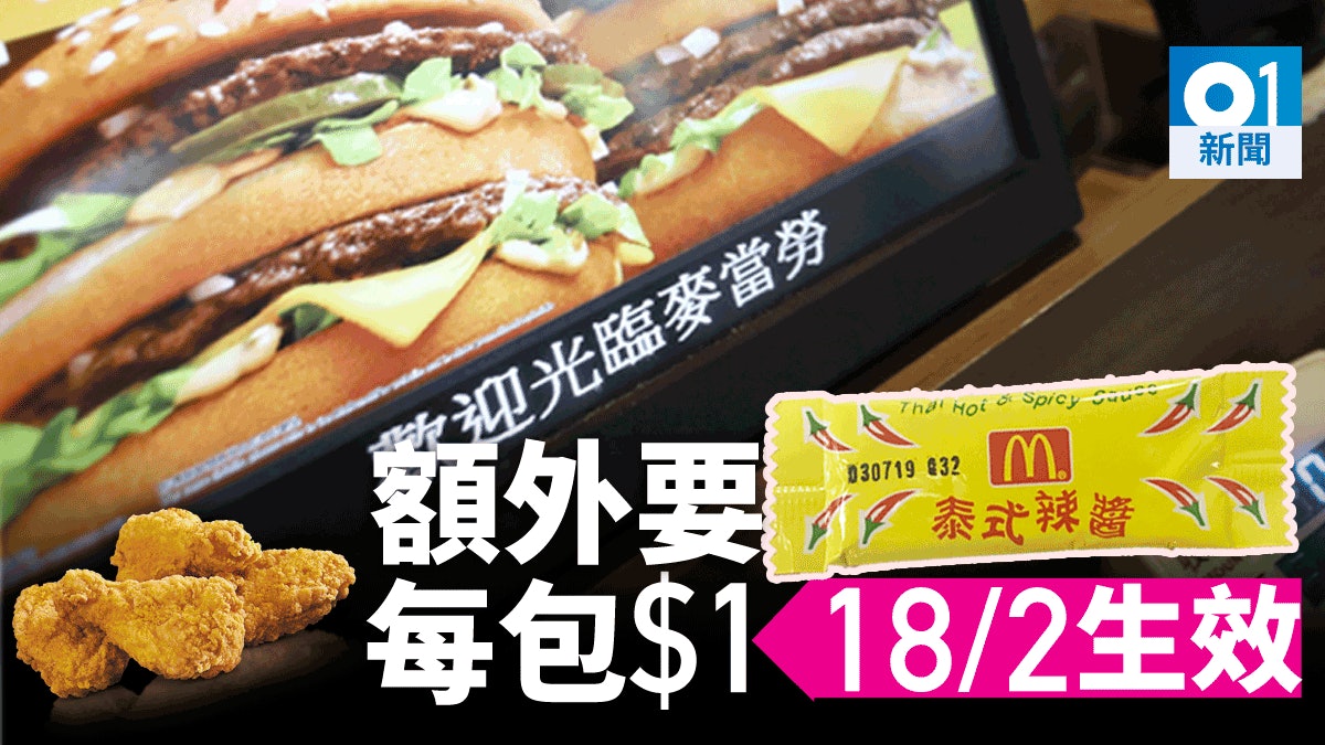 近日網上流傳麥當勞一張內部簡介相片,由下周一(18日)起凌晨4時起,麥當勞會向要求額外泰式辣醬的顧客收費,每包需付一元。麥當勞證實有關安排,指顧客購買脆香雞翼時將繼續免費獲得一包泰式辣醬,但額外加配的辣醬則要收費。$ B1 w( h% C# K' A# {2 o' _5 B- V) f