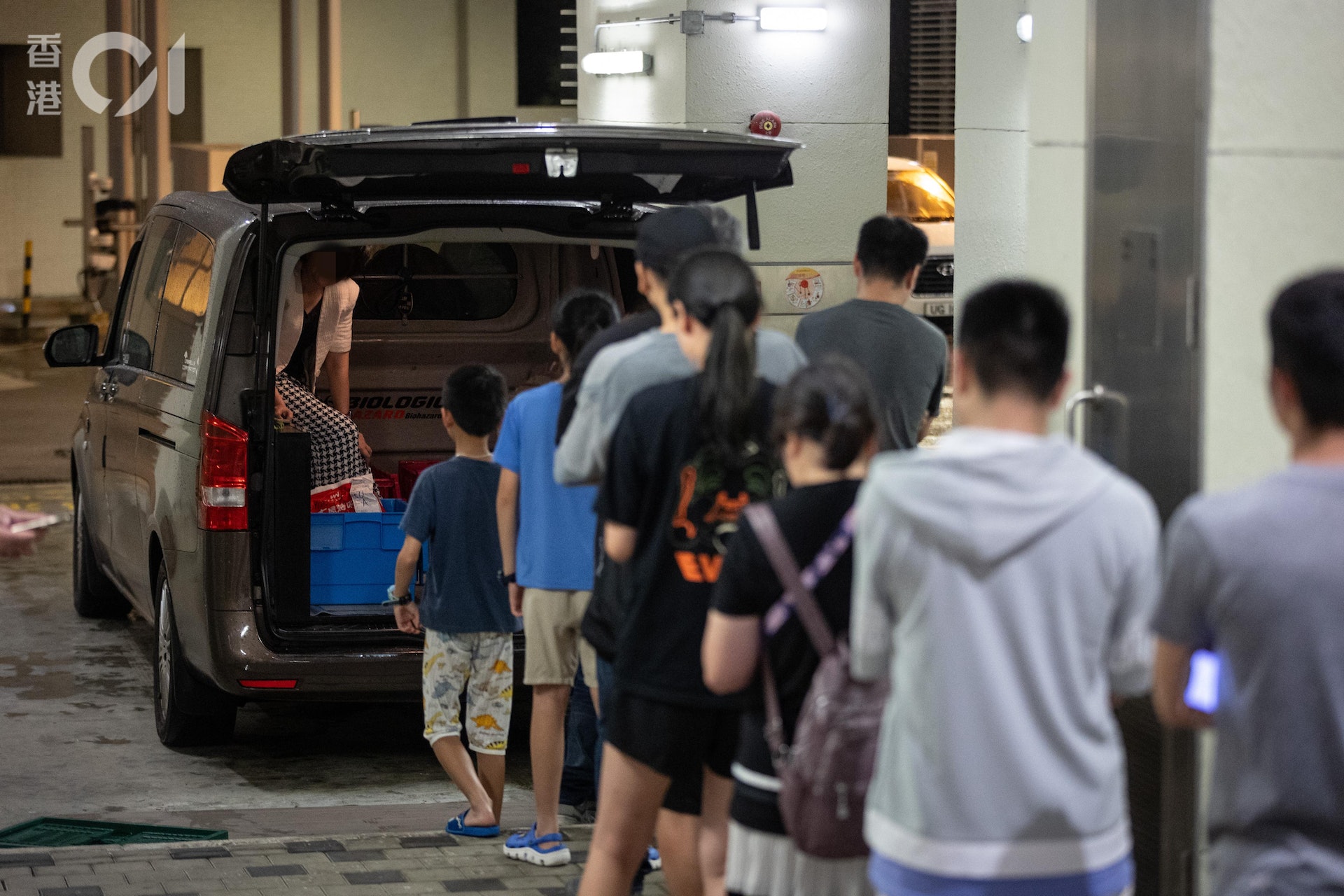 2 ^8 r: `2 X7 \! Ttvb now,tvbnow,bttvb運送跨境外賣的客貨車,每晚準時駛到粉嶺皇后山邨向大批在排隊等外賣的居民派餐。(廖雁雄攝)