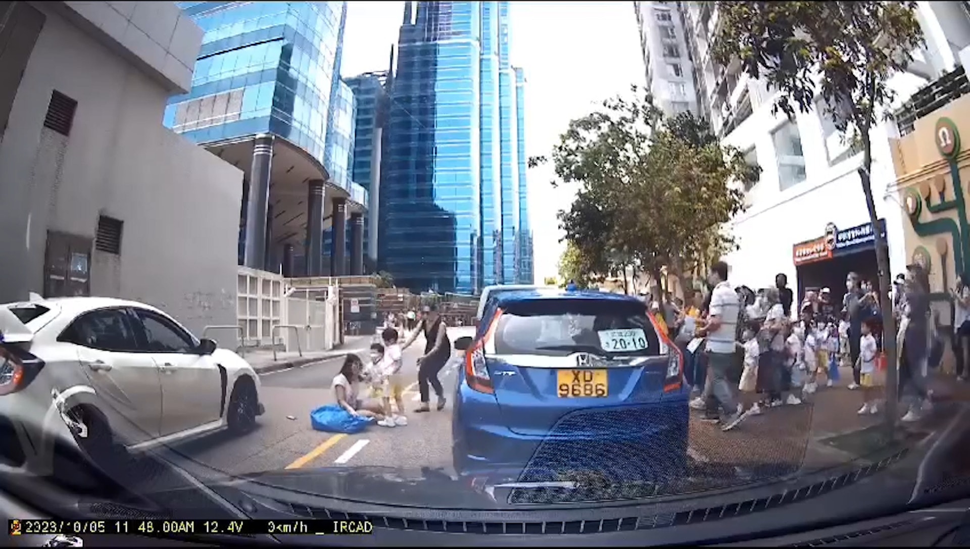 網上流傳的車cam片段顯示,事發在紅磡環海街一間幼稚園對開的馬路。當時涉事母親肩揹一個大袋,左右手分別拖着身穿校服的一對子女,從行人路經兩車之間的車罅步出馬路,其間她不時望向左方查看是否有車駛至。惟3母子走到馬路中間時,母親突然停步,驚見有車駛至,急忙用力嘗試將在左邊的孩子拉到右邊,並背向車輛駛來的方向,以自己的身體護着兩個孩子。隨即有一輛白色私家車駛到,收掣不及撞到3母子,3人均被撞至凌空飛起,再跌於地上。os.tvboxnow.com. E% Y" g* F5 [1 W7 t! }