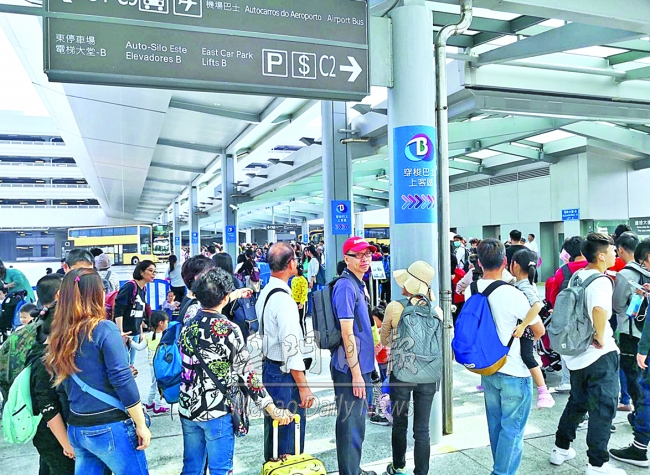 【本報消息】昨日回歸假期,本澳各出入境口岸秩序大致暢順。惟有人欲經港珠澳大橋澳門口岸往香港遊玩,但候車旅客大排長龍,居民苦等兩小時仍無法上車,加上“金巴”不准退票,祇能趕赴碼頭乘船,費時失事,認為相關交通配置仍需完善。