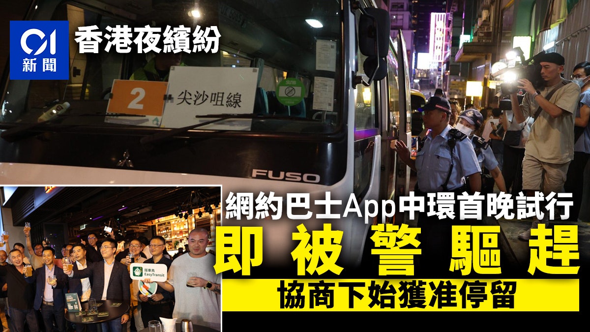 下周五至10月2日為中秋節及國慶日,料有市民會夜蒲飲酒夜回家。本港初創公司推出網約巴士平台「搭車鳥」接載夜歸人,香港非專利巴士聯會與平台合作今晚(22日)於中環蘭桂坊作試點,不過出師不利,三架旅遊巴停泊在威靈頓街等候乘客上車時,多次被警察驅趕,最後在協商下才獲准等候至乘客上車。平台創辦人袁洛桁表示會加強與警方及運輸署協調,及物色更適合、准許上落客的地方。