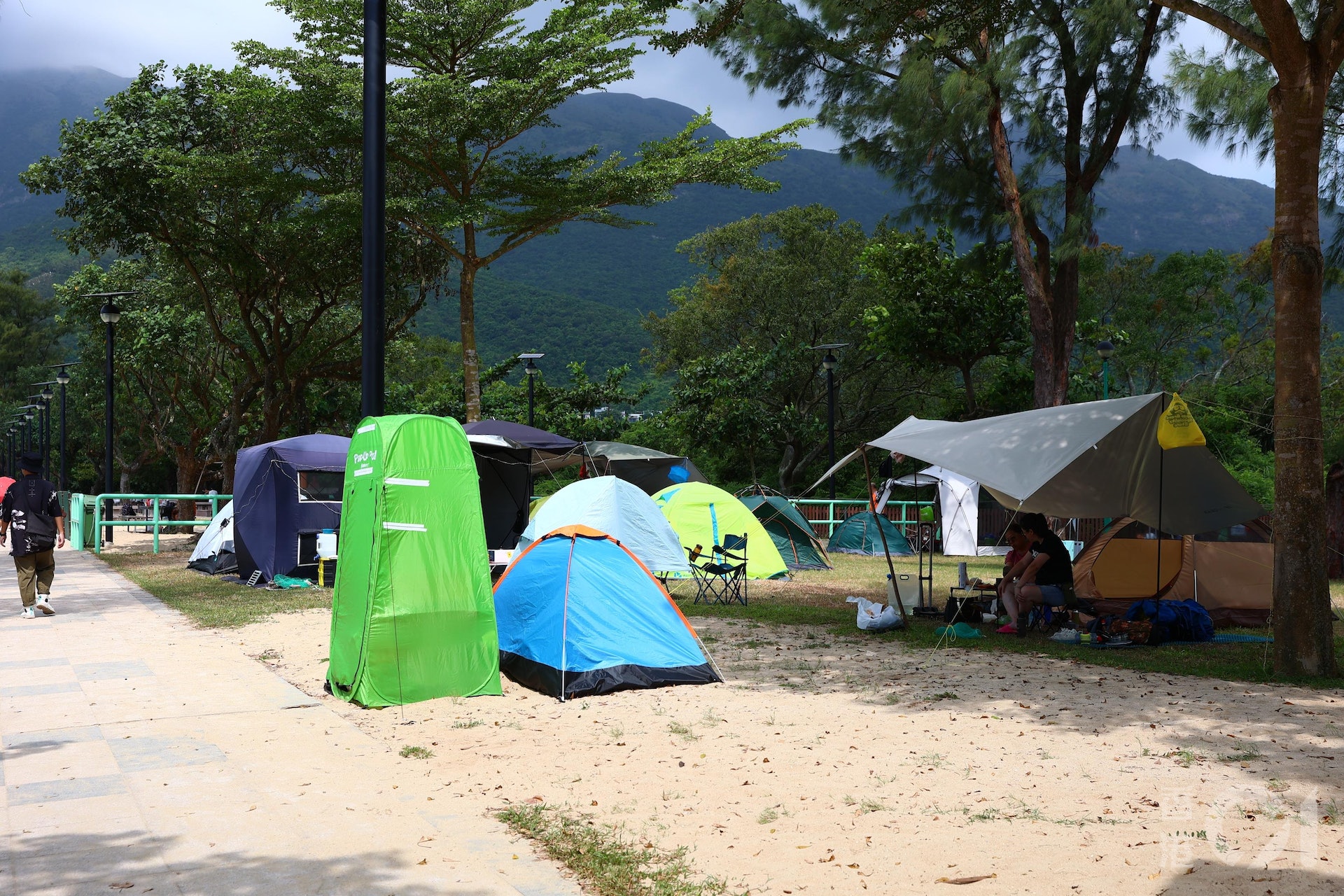 不少內地遊客愛到香港營地露營,在10月2日,大嶼山貝澳營地可見有多個帳幕紮營,垃圾大致收拾好。(鄭子峰攝)
