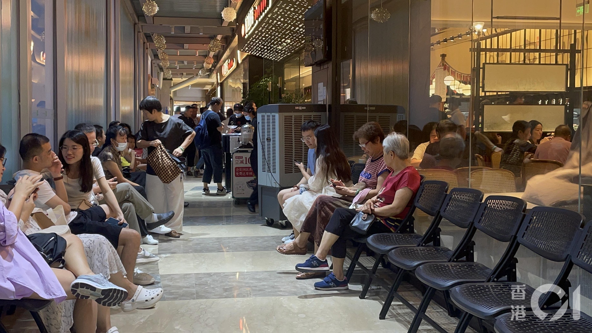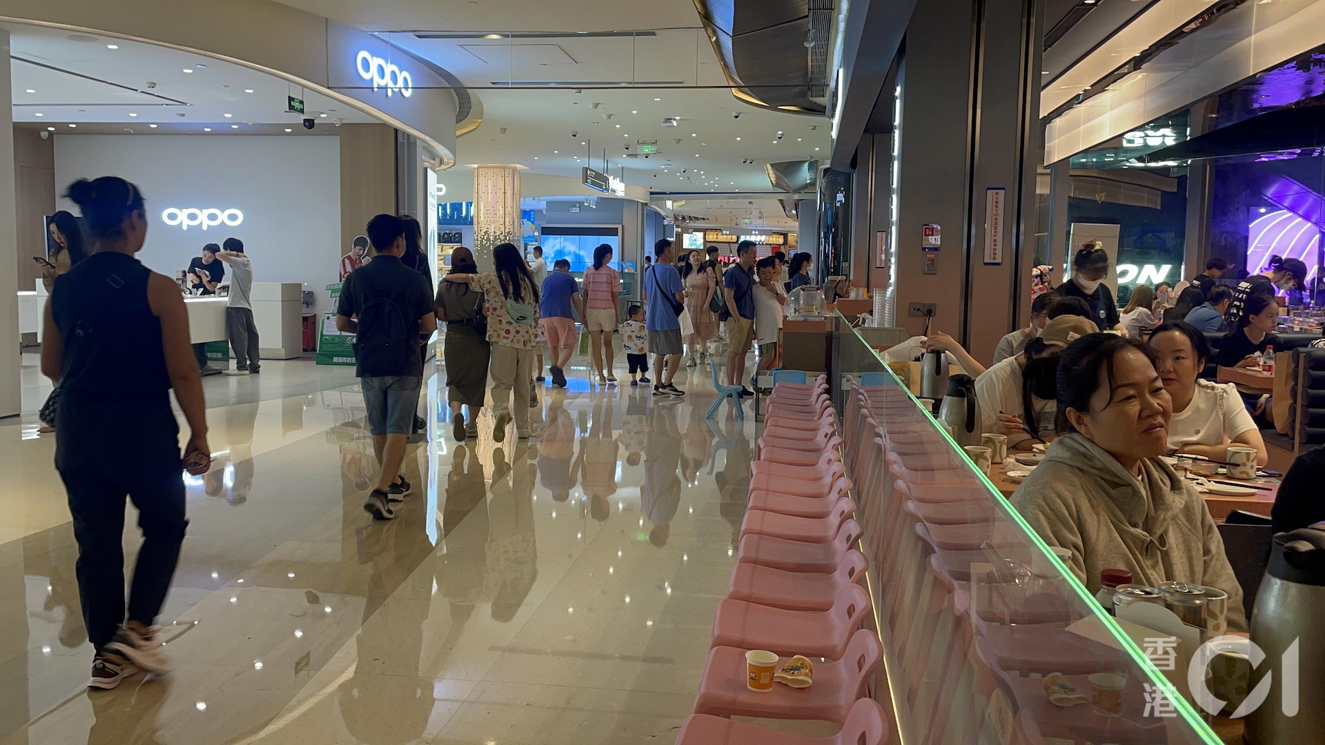 在懸掛8號風球期間,仍有港人抵不住假日食北上買玩的誘惑,風雨無阻前往位於深圳福田的星河COCO Park商場逛街。(洪芷菁攝)tvb now,tvbnow,bttvb/ N# X* M4 s" F