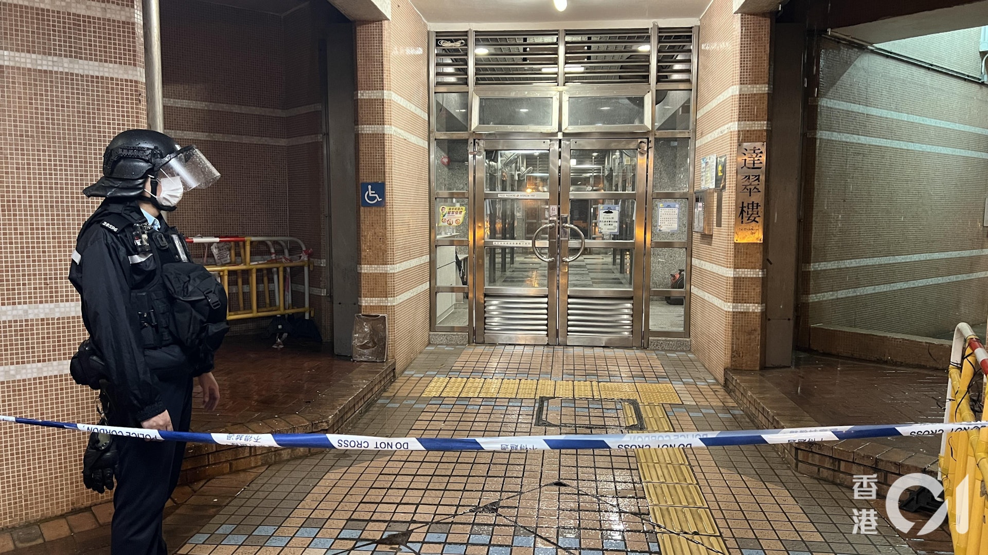 5 l" J% `' b0 i( ?7 T7 j今日(8日)凌晨1時許,秀茂坪發生企圖謀殺及自殺案。一對夫妻在寶達邨達翠樓一單位對開走廊打架,42歲女傷者浴血昏迷倒地,送院後情況危殆;56歲男子從高處墮下,倒卧一樓平台斃命。記者到場視察,涉事單位近門口位及門外走廊均遍佈血跡。十多名警員仍在場調查蒐證,包括重案組探員、政府化驗所人員及軍裝警員等,封鎖涉事單位。據了解,夫婦二人育有一名7歲女兒,有鄰居指,涉案夫婦由朝到晚時常吵架。( { ^! R' x9 f9 b& r& o