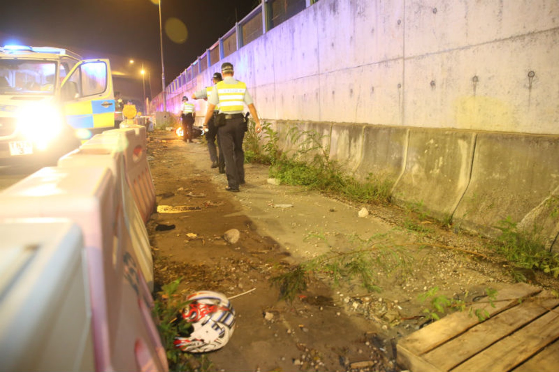 消息稱,男死者姓李(43歲),居於觀塘區,任職工程車司機,事發時剛與親友晚膳後回家。據了解,事發時懷疑男事主因切線而失控,先衝前10多米,掃毀一列水馬後,再狂撞一燈柱石躉,當場人車分離15米,據悉鐵騎士雖然表面僅手腳擦傷,但耳內出血,嚴重受創。