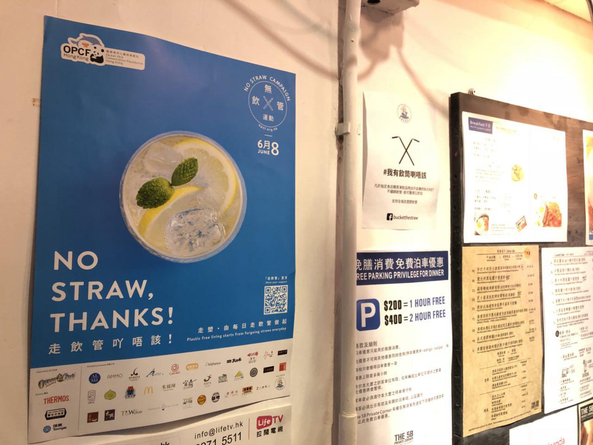 & @6 C2 v. |7 I5 G5 M店舖亦有貼出告示,表示該店會響應「走飲管」的行動。(黃靜薇攝)