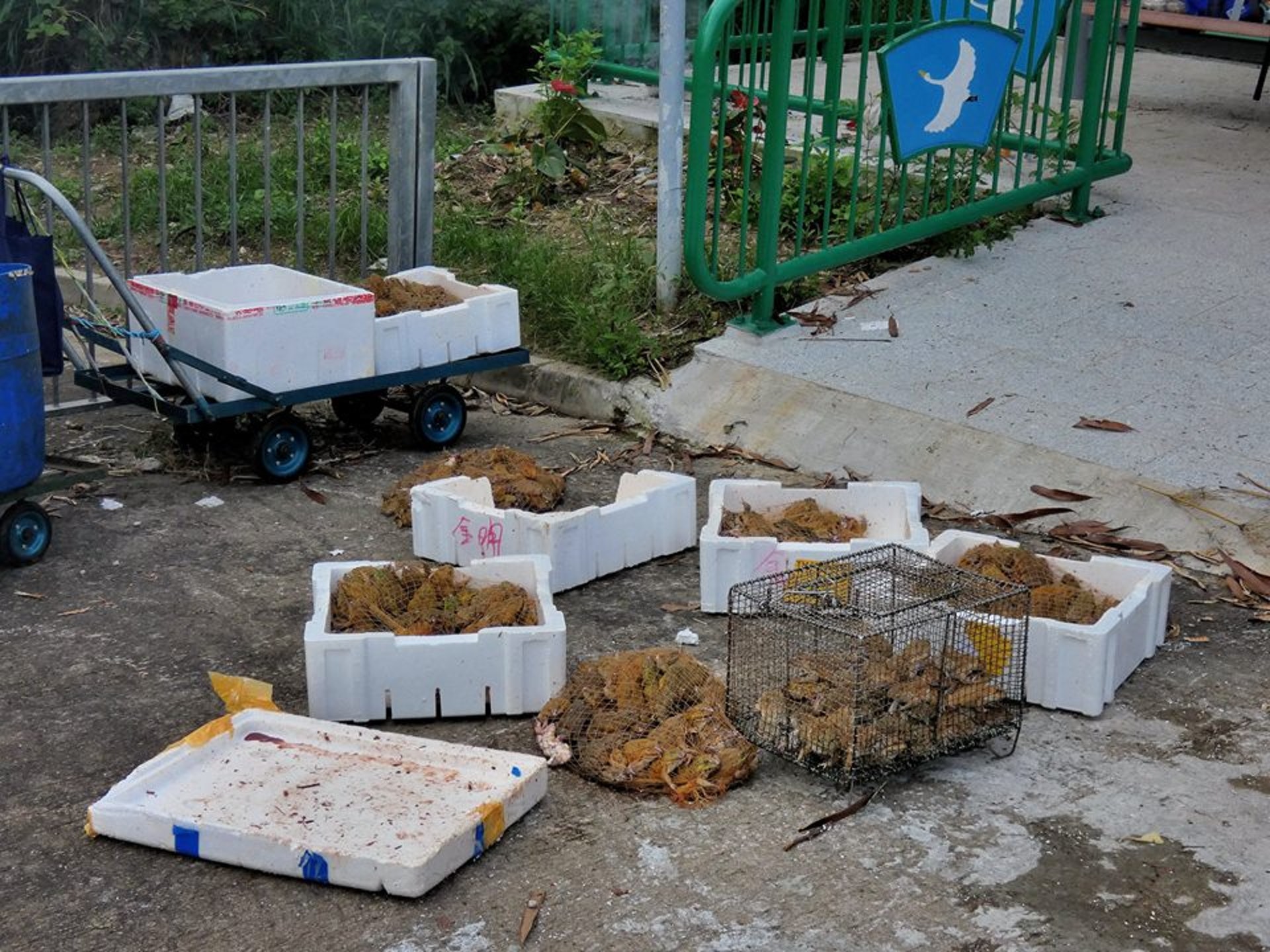 上水梧桐河一向是「放生熱點」,不時都有「善信」帶同魚、龜、蛙類來到河邊,誦經唸佛後就將之倒入河中。雖然現行法例下並無禁止放生活動,但胡亂放生,隨時可變大規模「殺生」。日前有網民拍得,有數名人士帶同7箱田雞及大量鮮魚烏龜,撒過紙錢後就將生物全數傾倒入河,被批評是在進行「另類殺生」。