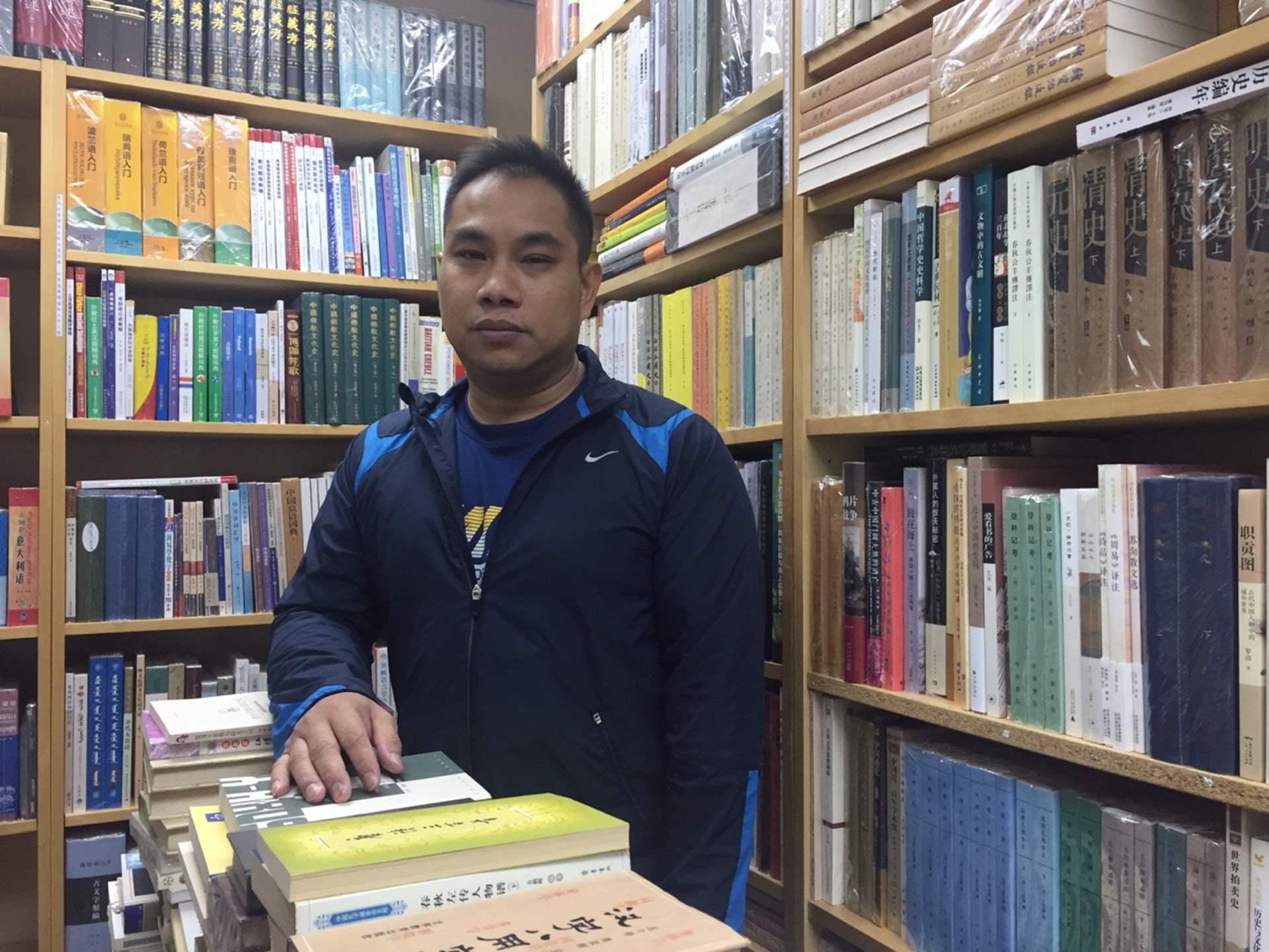 國風堂專賣冷門語言書,馮老闆指,自己在網上細心搜購。(胡家欣攝)