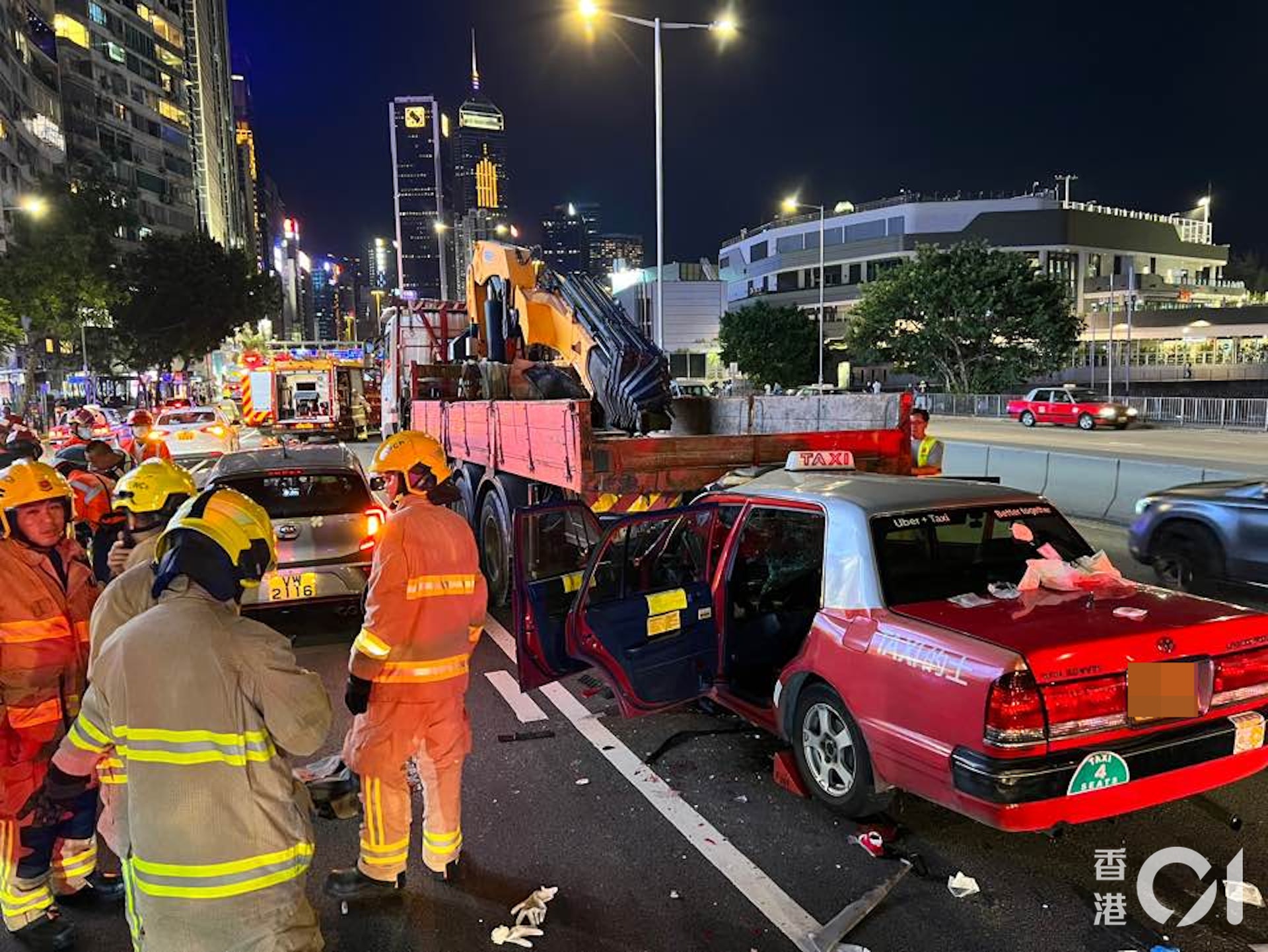 銅鑼灣告士打道昨晚(25日)發生嚴重車禍,一輛的士在世貿中心對開,撞向前方一輛重型貨車,車頭並剷入該貨車車底、撞及吊臂,造成最少1死4傷。警方指,初步調查相信的士疑收掣不及造成意外,呼籲市民如有資料或片段提供,請盡快聯絡警方。車禍中不幸離世之的士司機,警方已通知其家屬到醫院;而4名受傷的男女乘客,初步得悉為遊客,其中兩人留醫深切治療部,而3歲女童的傷勢則情況穩定。26日凌晨零時左右,警方安排拖車將涉事的士拖走,現場道路陸續解封。