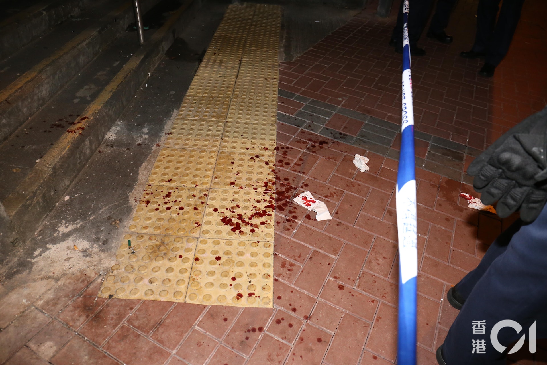 8 {; F. V% v+ M現場遺下血迹。(陳永武攝)