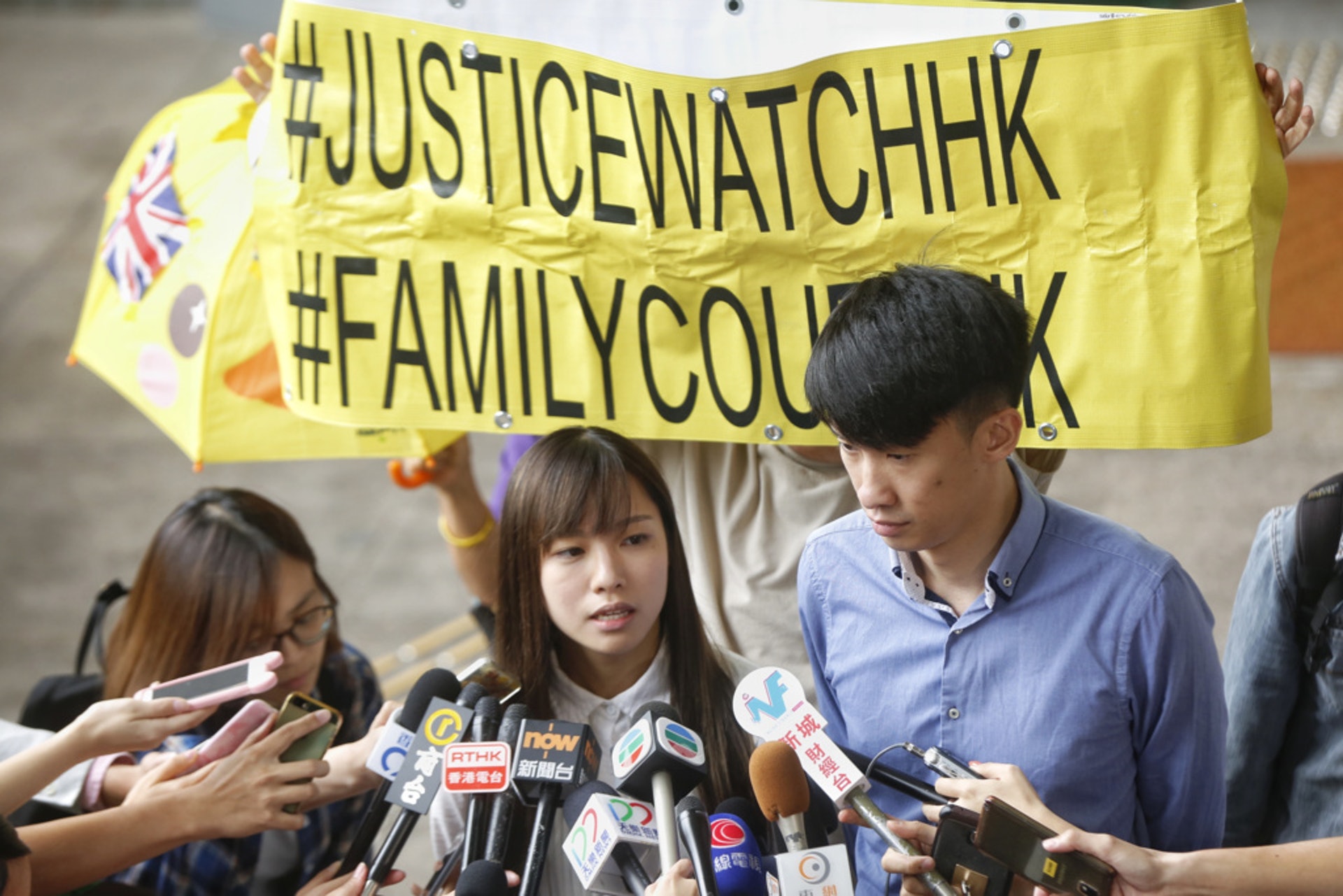+ [: a, A3 f" r7 n3 i) B公仔箱論壇青年新政的梁頌恆(右)及游蕙禎(中)後來被裁定非法集結罪成。(資料圖片/張浩維攝)4 v" I* @8 p$ ]5 \5 ?* A- r