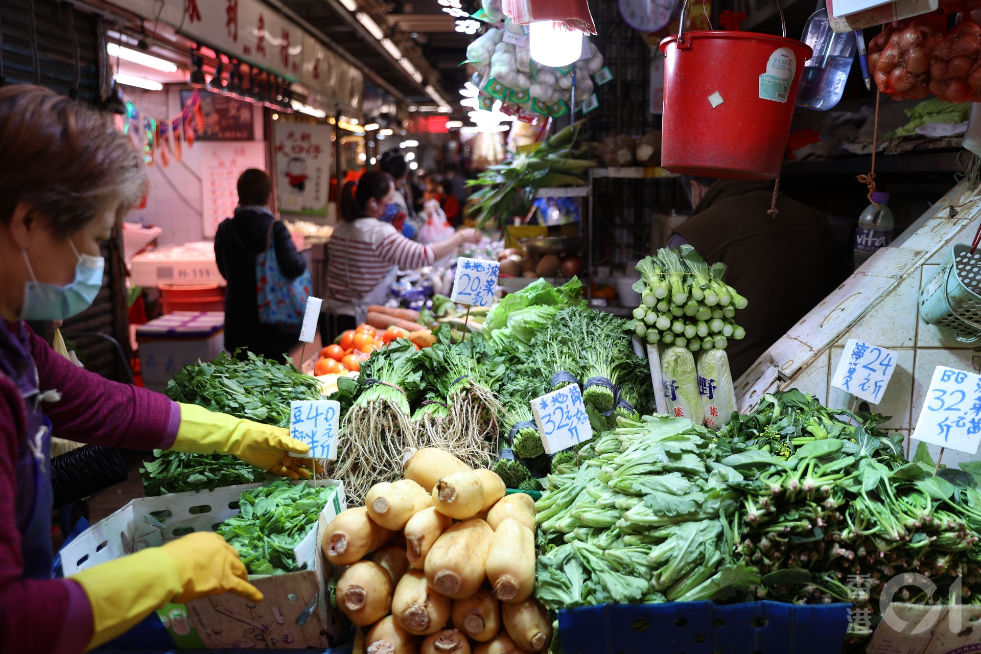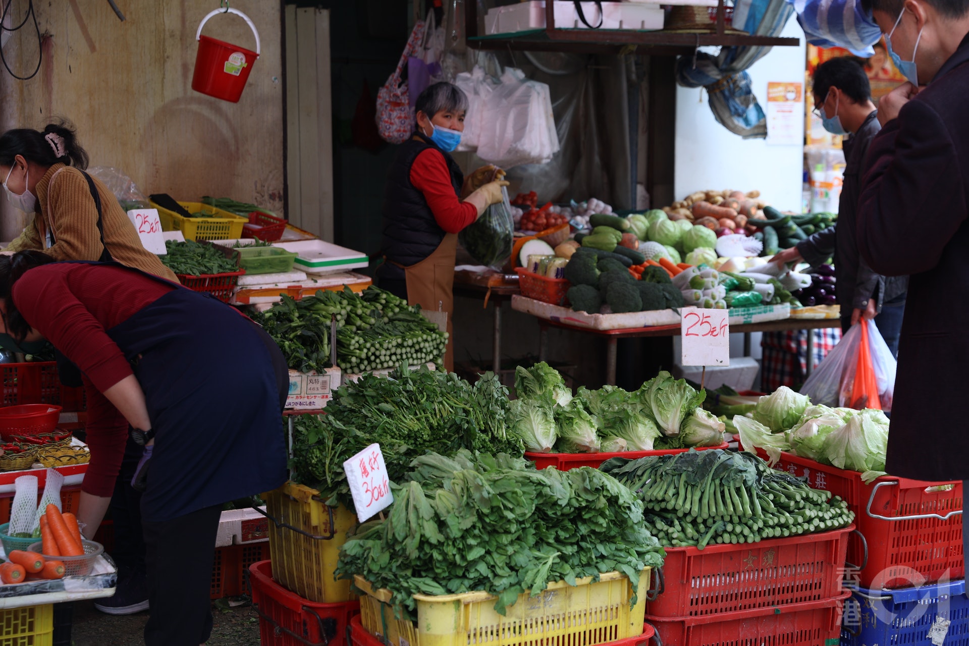 跨境貨車未能如常往返中港下,本港2月8日蔬菜供應緊張,售價飇升。(張浩維攝)