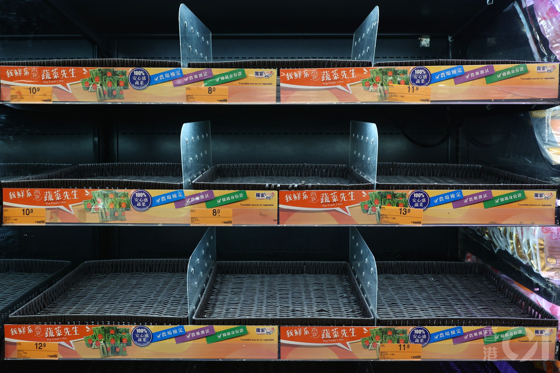 % X2 \& X( y( A5 a( b) {9 }% gos.tvboxnow.com跨境貨車未能如常往返中港下,本港2月8日蔬菜供應緊張,售價飇升,超市蔬菜架空空。(張浩維攝)7 Y( c! D# Y, o. O& r/ M/ L