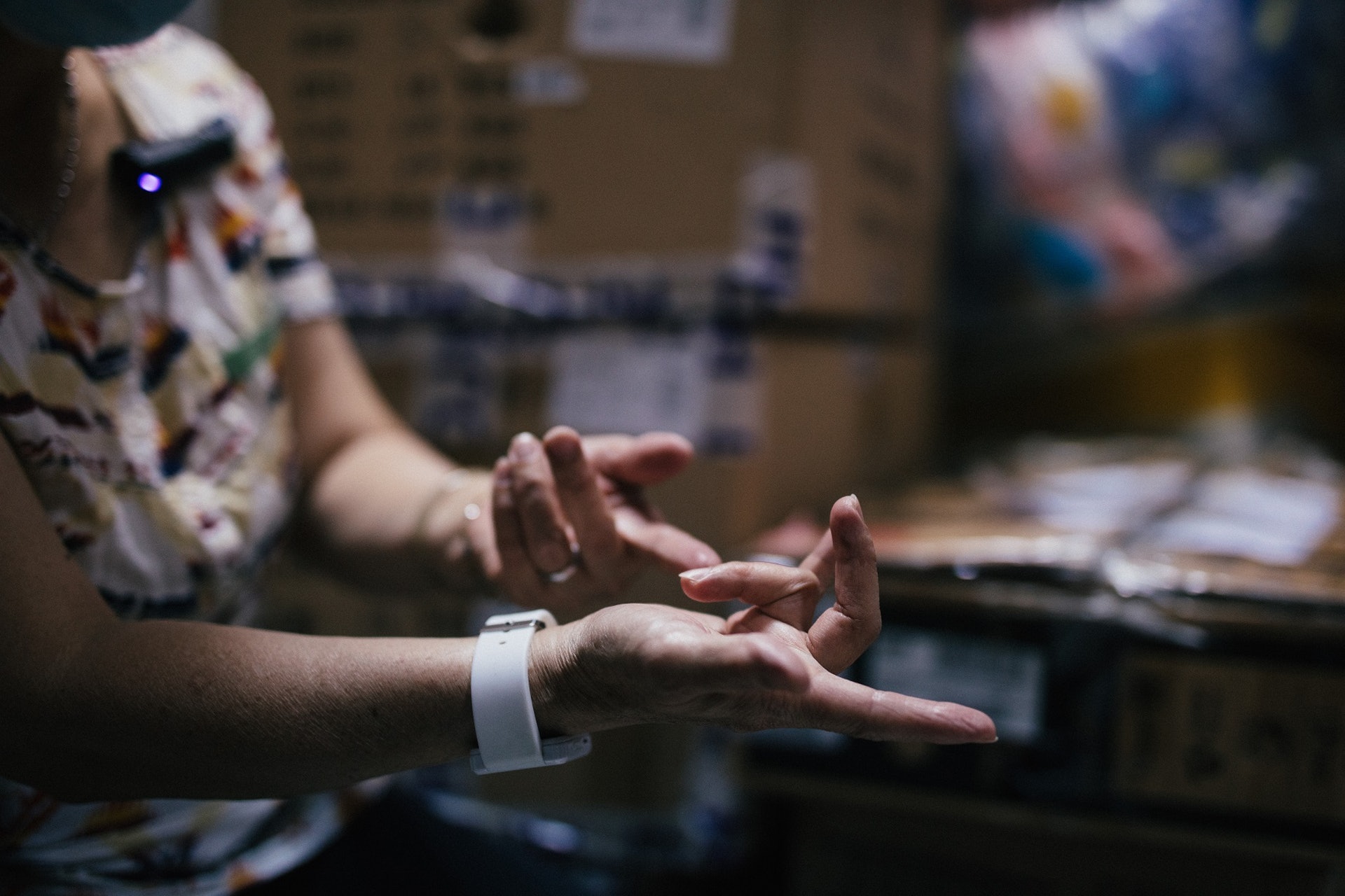 陳女士患上俗稱「彈弓手」的指屈肌腱鞘炎。(歐嘉樂攝)tvb now,tvbnow,bttvb/ H( h# T! m: |! h% y7 j3 n" T