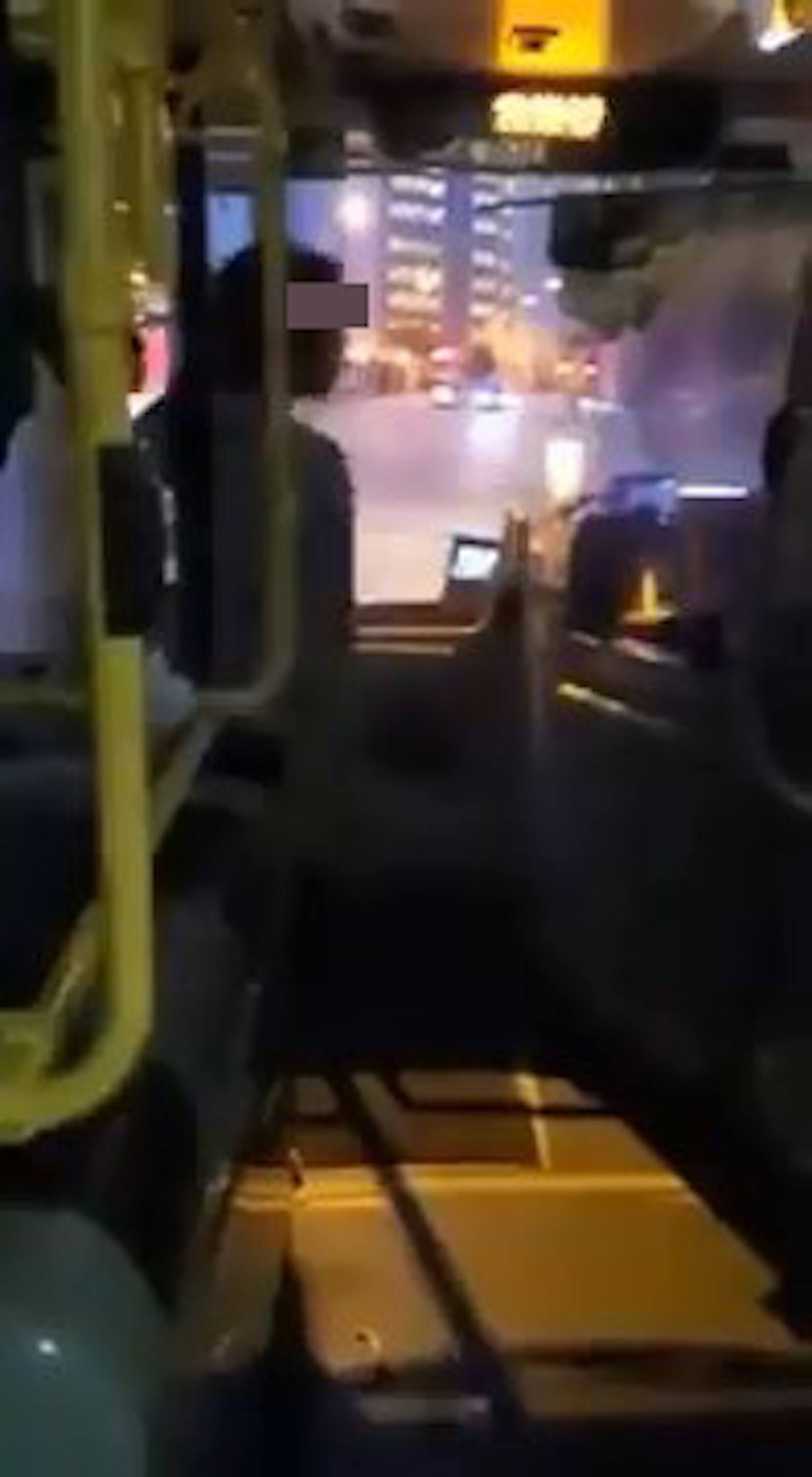 ' T1 ?% [# c# w1 \, \7 I [男女大鬧巴士期間,車長未有作過多回應,致電向公司匯報事件。(影片截圖)公仔箱論壇9 p" D2 b. }3 x& y9 I7 E& x5 w
