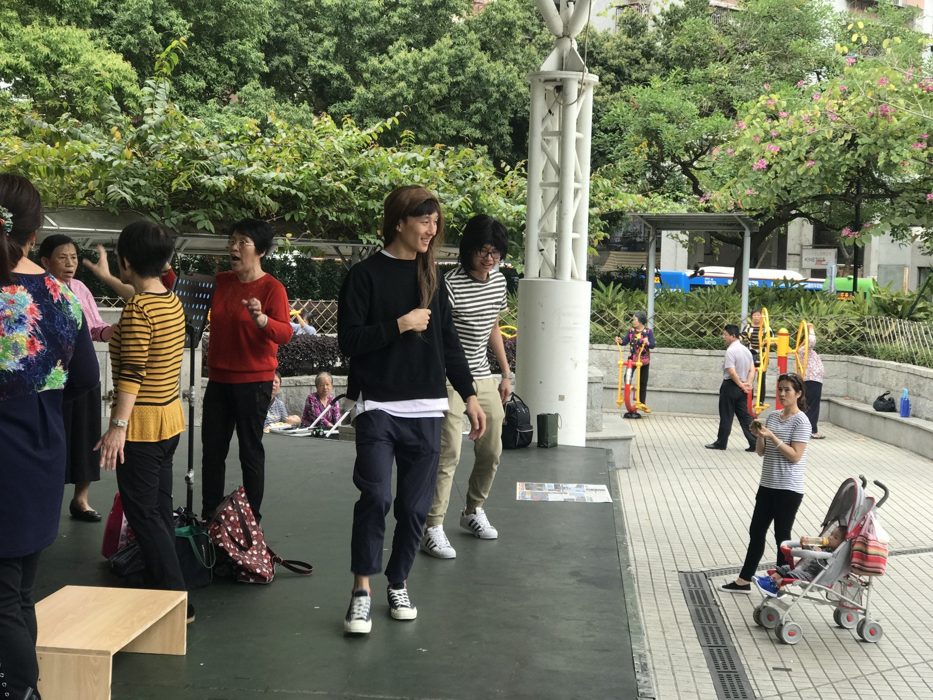 祐漢公園四周以民居為主,大媽震撼的歌聲打入各人的耳朵。(香港01記者攝)( H) U' B% _/ B( @& Z; K