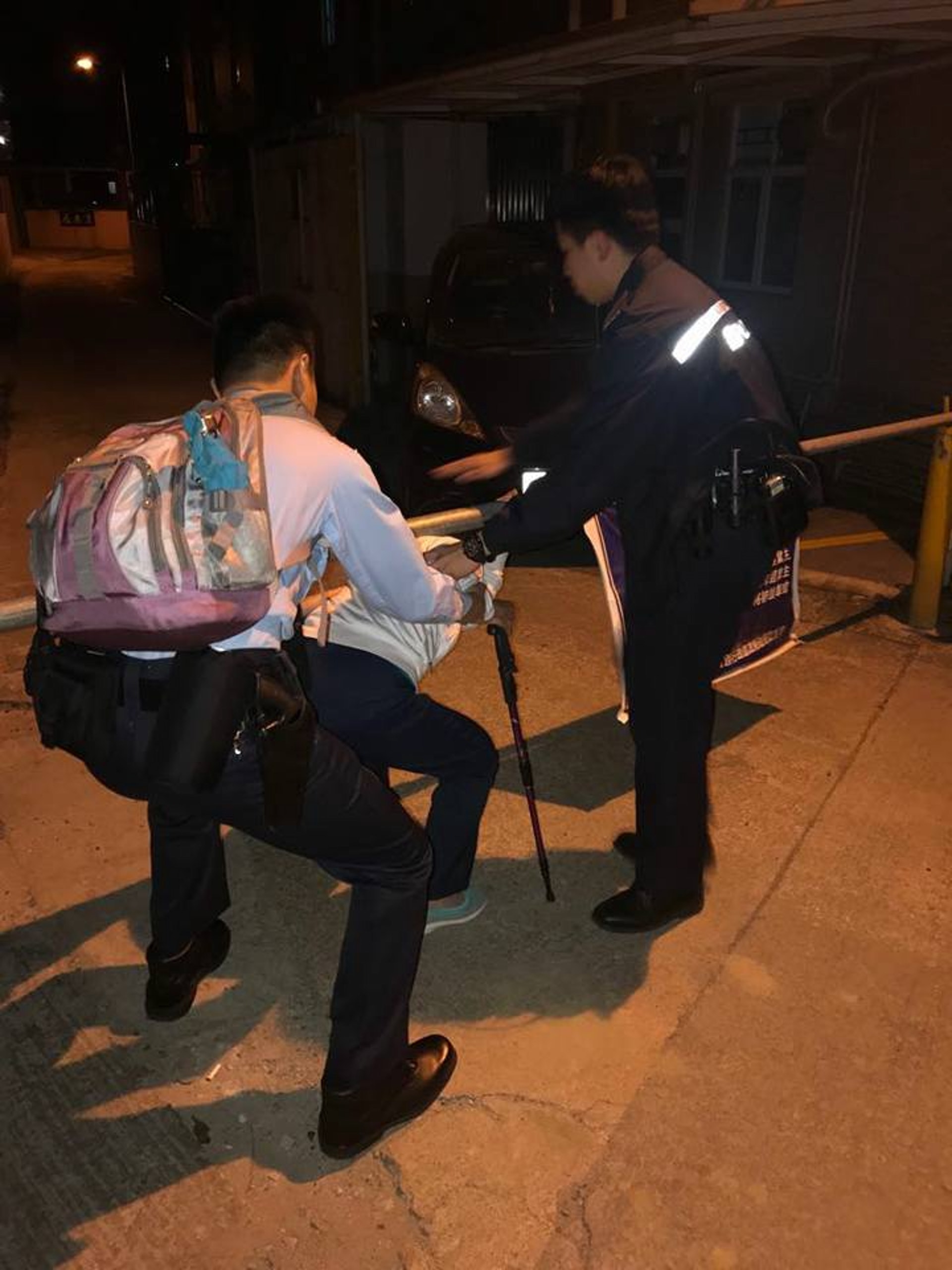 6 j- [. L. ^4 n. ztvb now,tvbnow,bttvb有老婦在警員協助下,屈身穿過欄下進村。 (facebook專頁大埔Tai Po圖片)